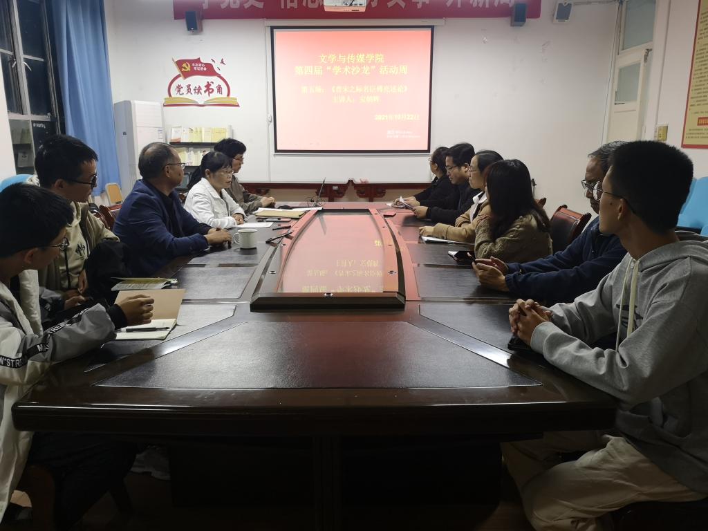 10月22日晚7:00,中国古代文学组在2307会议室,顺利举办了文传学院第四届“学术沙龙”活动周的第五场学术沙龙活动。本场学术沙龙活动由安朝辉老师主讲,主题是“晋宋之际名臣傅亮述论”,孙鸿教授主持,学报编辑部主任杨明贵和学科组郑继猛教授、罗焕玉副教授 、王丽芳副教授、关满春老师、谭志轩老师以及部分学生参加了活动研讨。