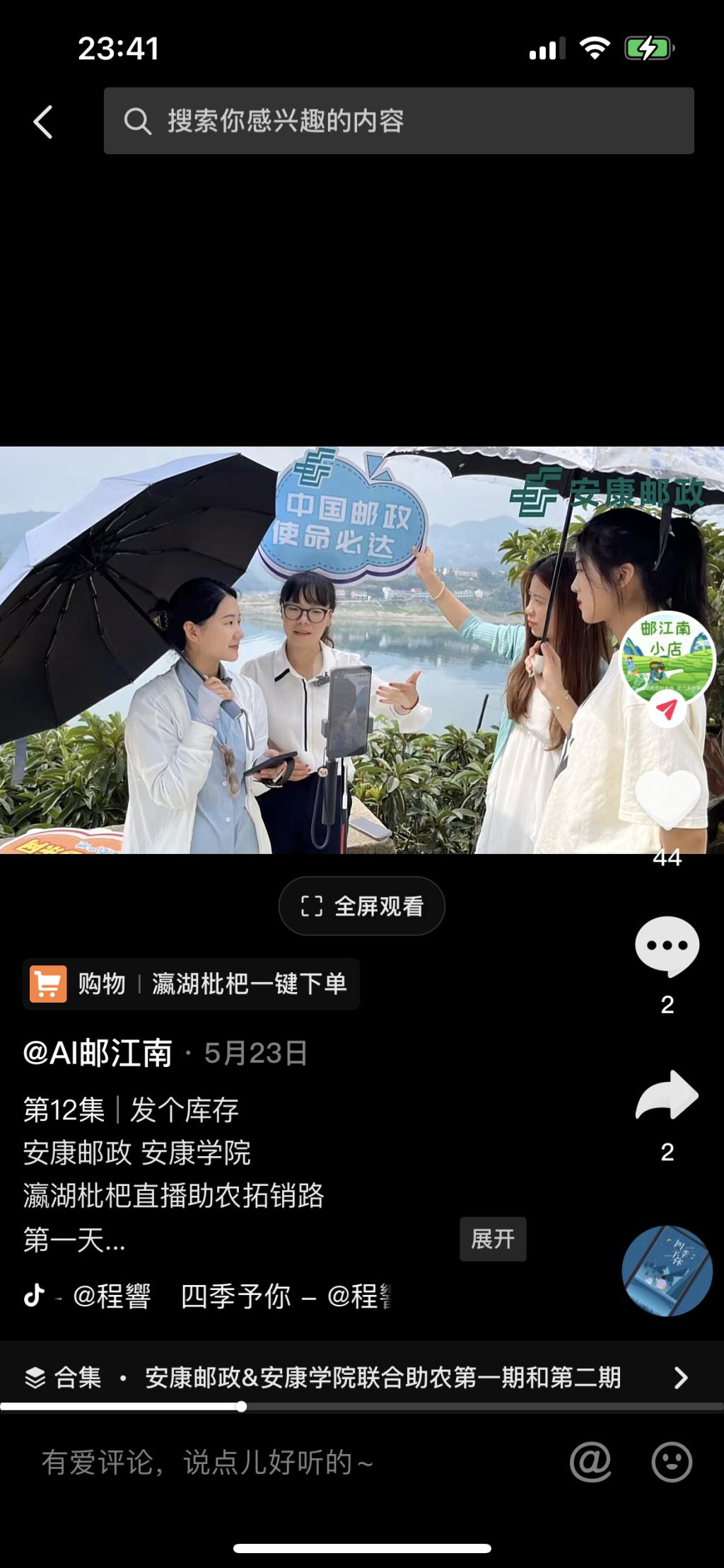 学生实习、见习更加强调融入地方经济文化建设,助力地方经济文化推广宣传,力求在真实工作环境中锤炼专业实践能力。本年度网络与新媒体专业学生通过专业见习1、采风实训等课程为安康汉滨区香溪洞景区旅游形象宣传拍摄多部宣传片。通过专业见习2与安康邮政江南分局成立校外直播实践基地,参与瀛湖枇杷推广项目策划、媒体运营、电商直播等实践活动,推广短视频作品70部,制作出的视频均已上传至邮政官方抖音账号Ai邮江南以及Ai邮安康,目前在线直播点击量已超过6万。