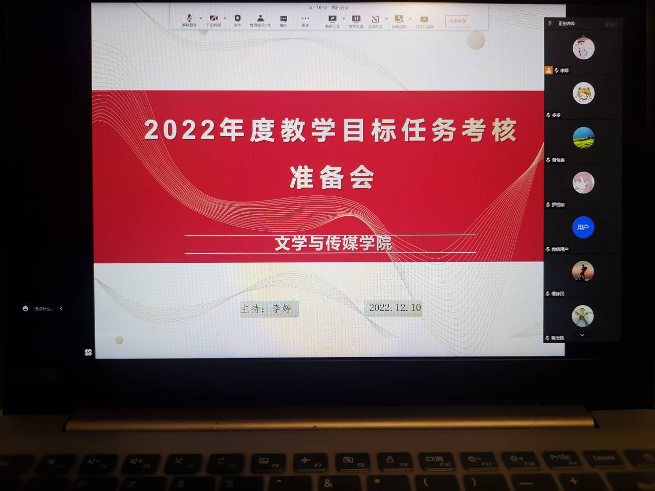 2022年12月10日,今年会jinnianhuicom召开2022年度教学工作目标任务考核准备会,学院教学督导组长、系(教研室)主任/副主任、综合办主任、学工办主任、教学秘书、实训室兼职管理教师等参会。会议由教学副院长李婷主持。本次会议共分两个环节: