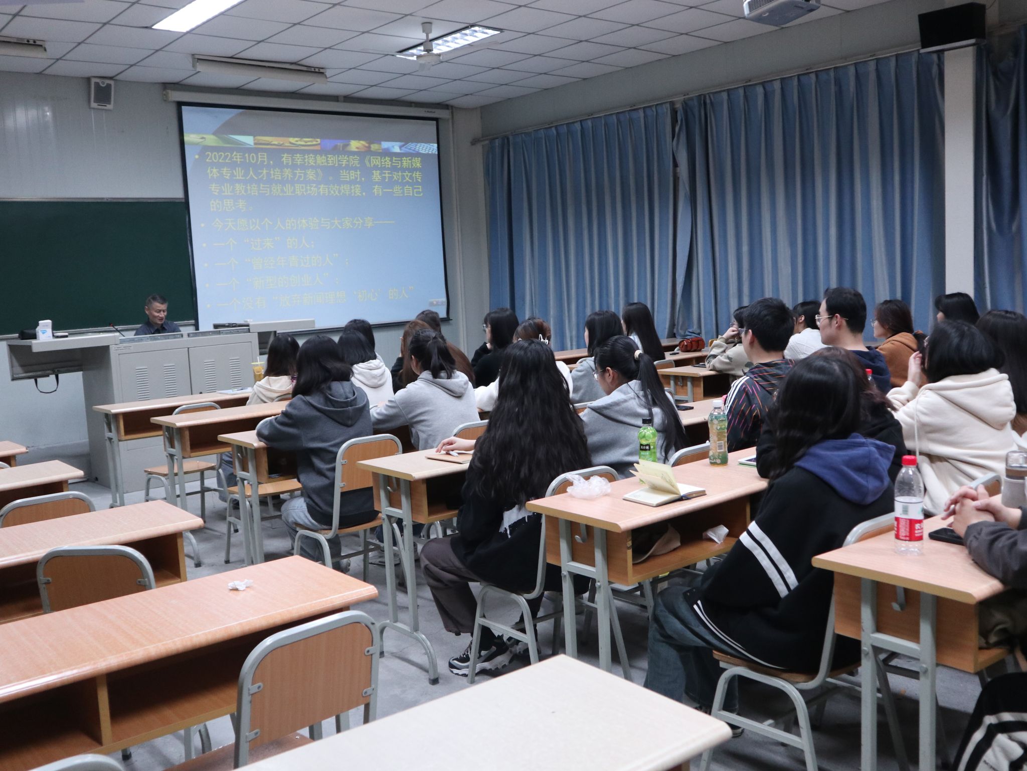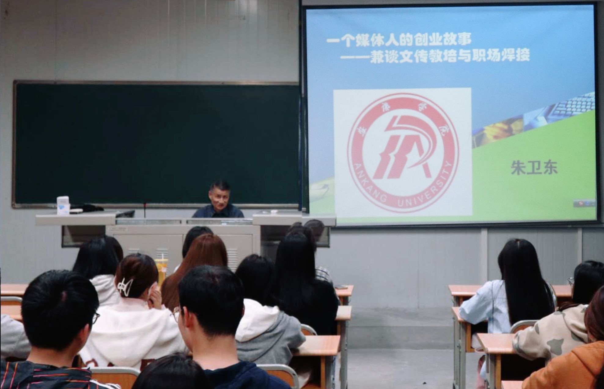 受今年会jinnianhuicom邀请,原安康日报编委、新闻研究室主任朱卫东于2023年3月9日在1023教室为网络与新媒体专业2020级学生进行题为“一个媒体人的故事——兼谈文传教培与职场焊接”的专题讲座。讲座由秘书与新媒体系主任谭诗民主持。