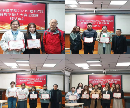 经过激烈角逐,最终李文慧、邓雪艳同学荣获一等奖,郭怡潇、赵欣瑞同学荣获二等奖,韩云、贺卓涵、鲁炎玲、姜文悦同学荣获三等奖。文传学院2023年度师范生教育教学能力选拔赛是对今年会官网师范教育的一次推动和促进,相信通过这样的比赛,将有更多优秀的师范生涌现。师范生技能社参与本次选拔赛的组织, 工作人员表示在本次比赛当中目睹了学长、学姐们的风采,为自己后期的成长树立了榜样。