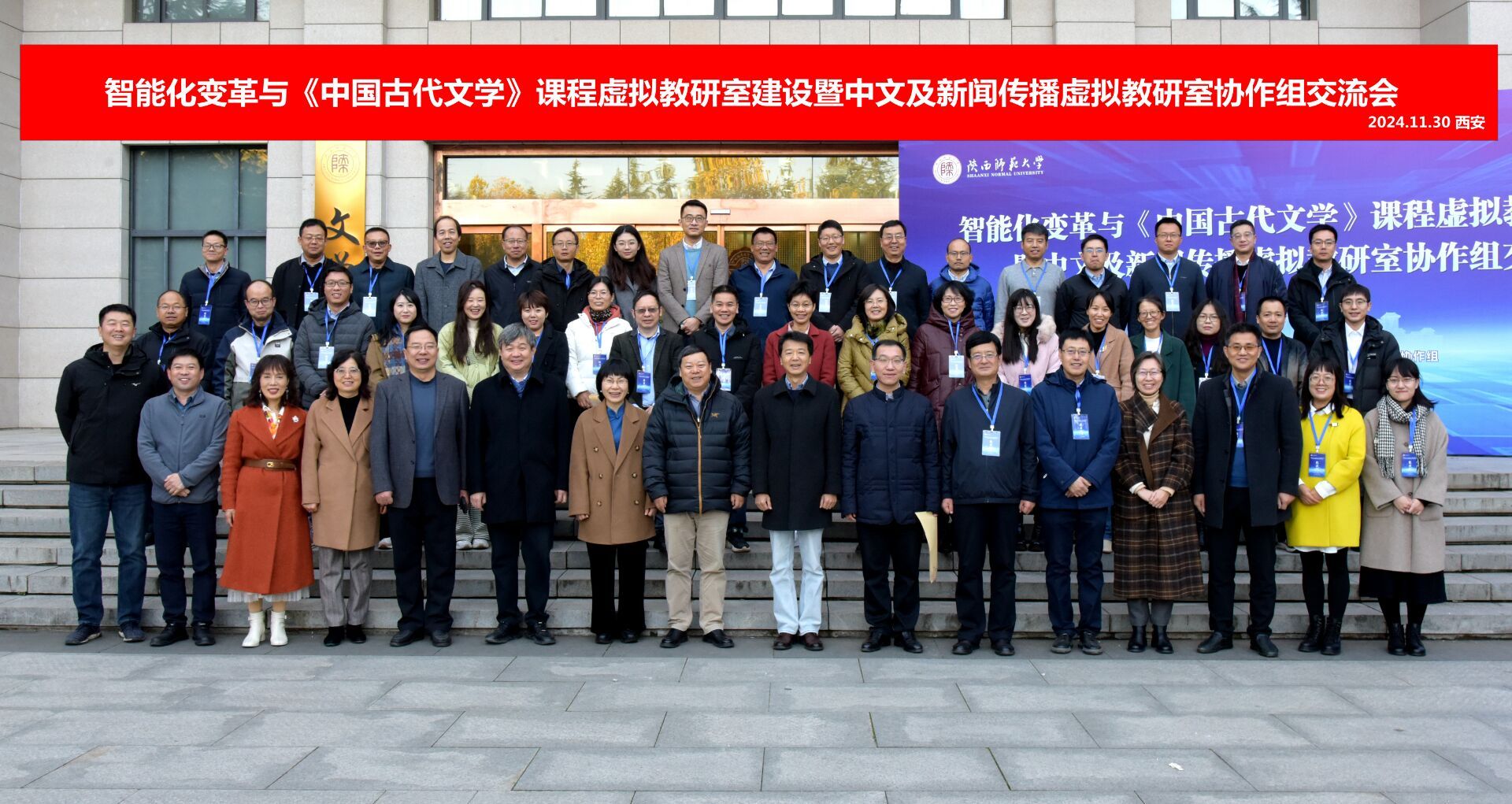 11月30日,由教育部中文及新闻传播虚拟教研室协作组和陕西师范大学文学院联合主办的“智能化变革与《中国古代文学》课程虚拟教研室建设暨中文及新闻传播虚拟教研室协作组交流会”在陕西师范大学长安校区举办。教育部中文及新闻传播类虚拟教研室协作组组长、北京师范大学文学院过常宝教授,教育部中文及新闻传播类虚拟教研室协作组联络员、北京师范大学文学院马东瑶教授,陕西师范大学文学院院长苏仲乐教授、古代文学教研室教师代表以及来自省内外32所高校的50余名专家学者出席会议今年会官网教师黄治强参加会议