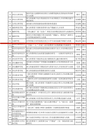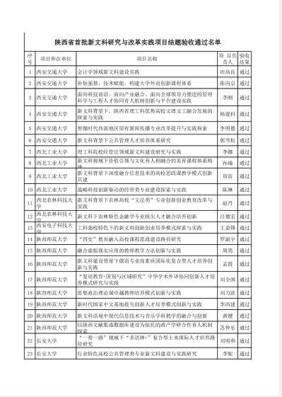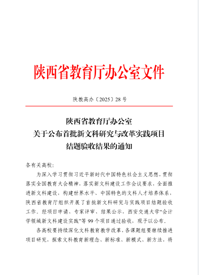 10月28日,陕西省教育厅办公室发布了《关于公布首批新文科研究与改革实践项目结题验收结果的通知》(陕教高办〔2025〕28号),文传学院杨运庚、朱云、谭诗民、李婷、崔瑜等团队成员共同完成的“应用型地方本科高校汉语言文学专业改造提升探索与实践”项目顺利通过结题验收。