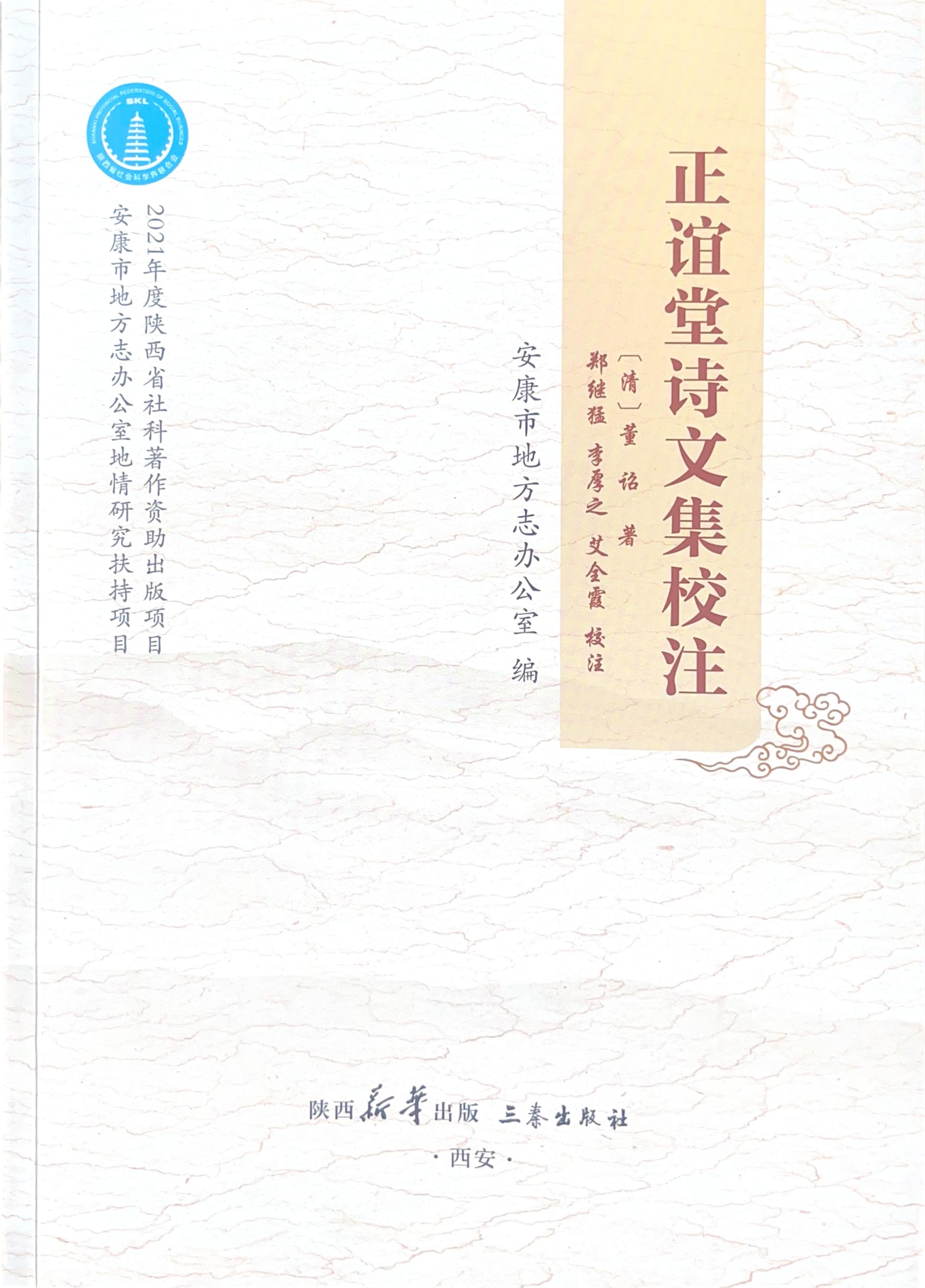 近日,今年会官网郑继猛教授主持校注的《正谊堂诗文集校注》由三秦出版社出版发行。该书以67万字的篇幅首次对清乾嘉时期安康著名教育家、文学家董诏的诗文集作品《正谊堂诗集》《正谊堂文集》做了精细整理、校勘、注释工作,是我校地方古籍文献整理的又一项重要成果。