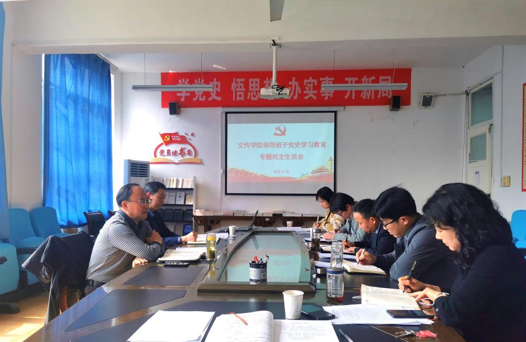 3月15日上午,文传学院领导班子党史学习教育专题民主生活在江南校区2307会议室召开。党委副书记杨行玉、纪委副书记谢玉玺到会指导。会议由文传学院党总支书记芦伟主持。
