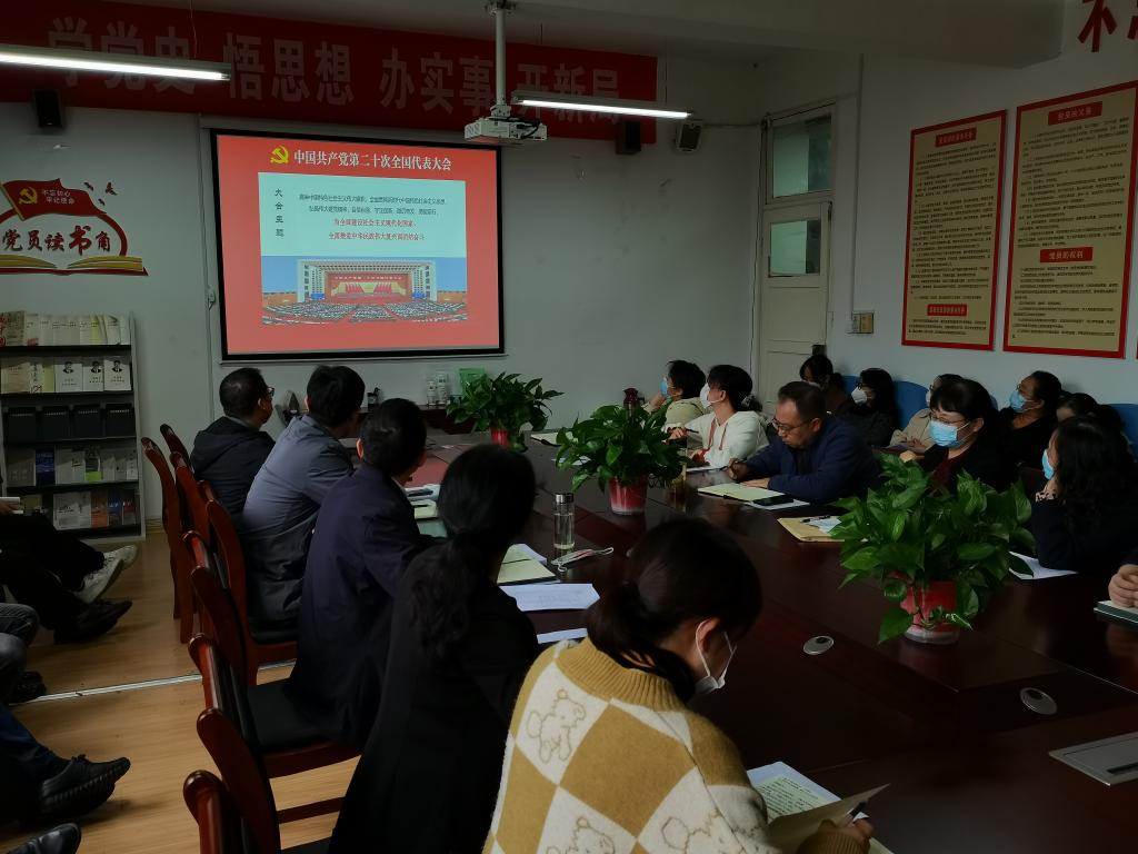芦伟重点围绕党的二十大报告,着重从党的二十大重大意义、报告结构、报告关键词等方面解读了会议精神,并就会议整个过程、审议通过的三个决议进行了通报。全体教职工集体观看了习近平总书记在二十届中共中央政治局常委同中外记者见面时的讲话视频。