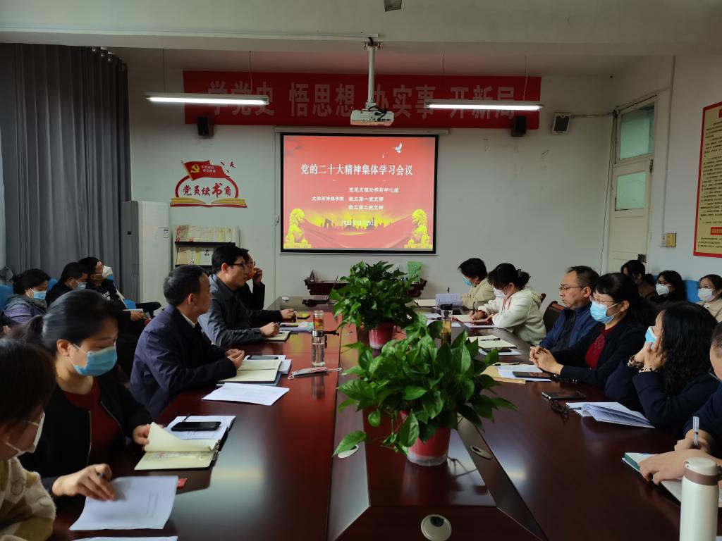 会议强调,各党支部要切实发挥基层战斗堡垒作用,迅速组织开展党的二十大精神宣传学习系列活动,用党的二十大精神、党的创新理论武装师生头脑,引导学院全体党员、全体师生牢记习近平总书记的嘱托、不忘初心、牢记使命,团结一致、踔厉奋发,努力创造文传学院更加灿烂美好的明天。