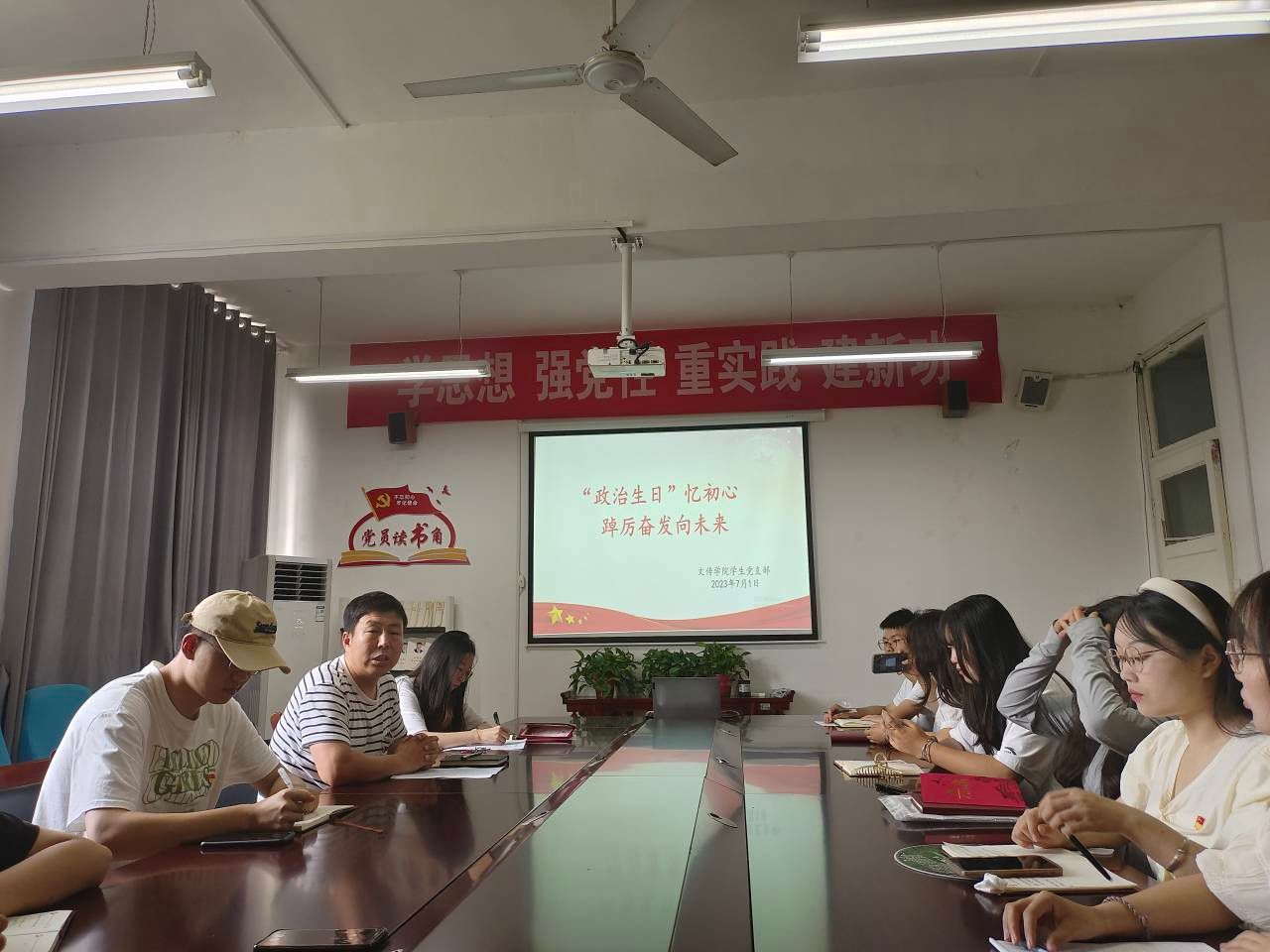 为了庆祝中国共产党成立102周年,激励广大党员充分发挥先锋模范作用,增强党组织的凝聚力,2023年7月1日上午9:00,今年会jinnianhuicom学生第一、第二党支部联合开展“‘政治生日’忆初心,踔厉奋发向未来”主题党日活动。活动由第二党支部书记薛涛主持,学生第一、第二党支部全体党员同志参会。