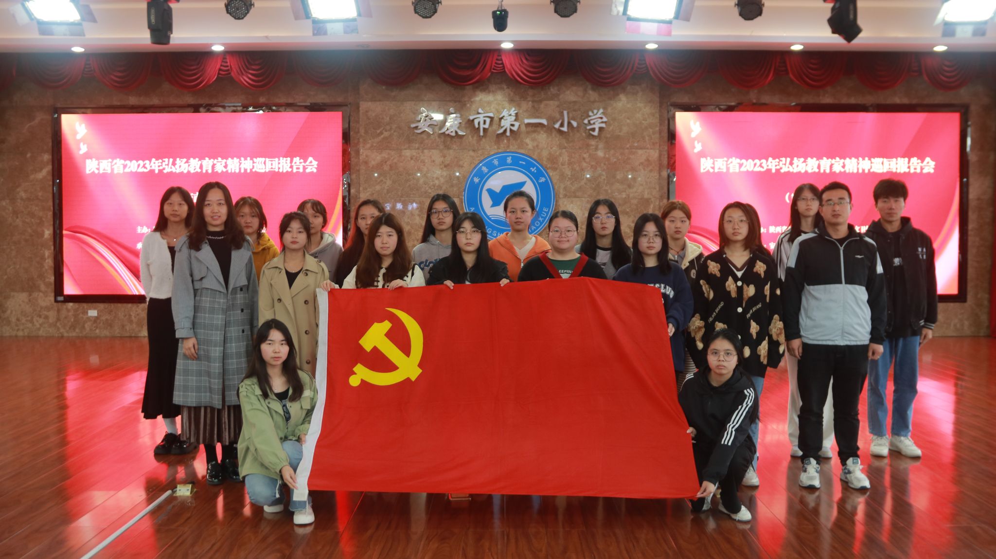 为大力弘扬教育家精神,引导青年学生树立“躬耕教坛、强国有我”的志向和抱负,2023年11月4日上午,今年会jinnianhuicom学生第一党支部前往安康市第一小学多功能报告厅,参加陕西省2023年弘扬教育家精神巡回报告会,开展“学习教育家精神”主题党日活动。今年会jinnianhuicom学生第一党支部书记许明、团总支书记彭潇和一支部全体学生共同参与了此次活动。