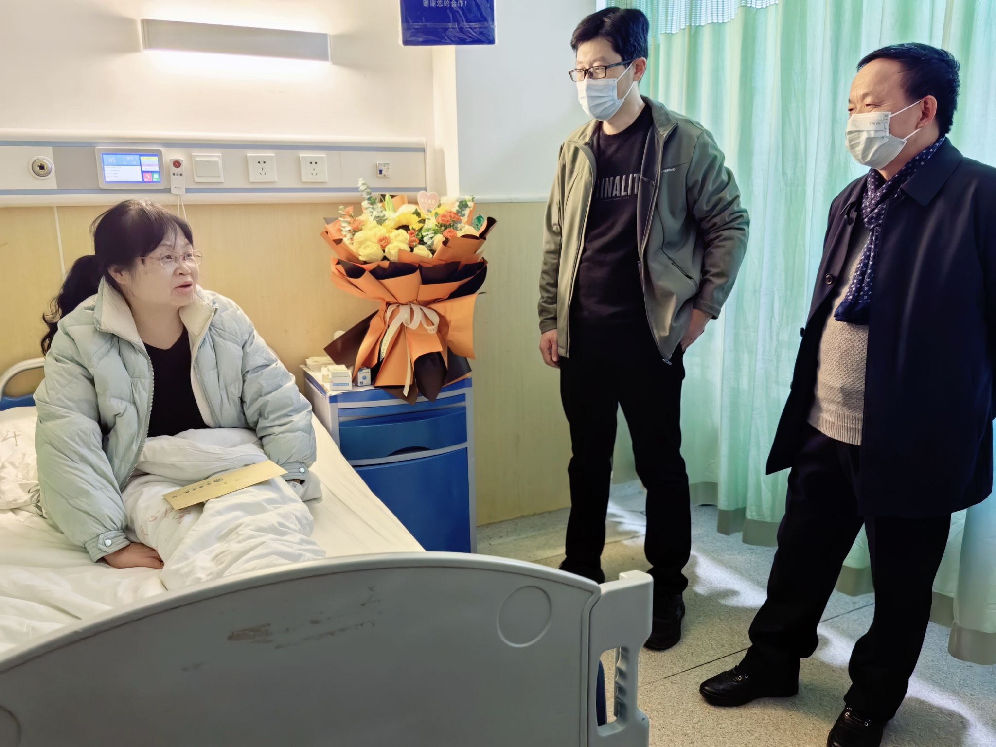 文传学院党总支及领导班子成员慰问了因病住院治疗期间仍坚持利用间歇返校为学生上课的孙鸿老师、因上班途中摔伤无法长时间行走和站立却坚强克服行动不便与疼痛依然坚守教学岗位的周海霞老师、带病坚持教科研出院后立即重返教学科研岗位的谭诗民老师,对他们心系课堂、情系学生、爱岗敬业的精神予以高度肯定,并以组织的关心关怀向他们表达了深深的敬意。