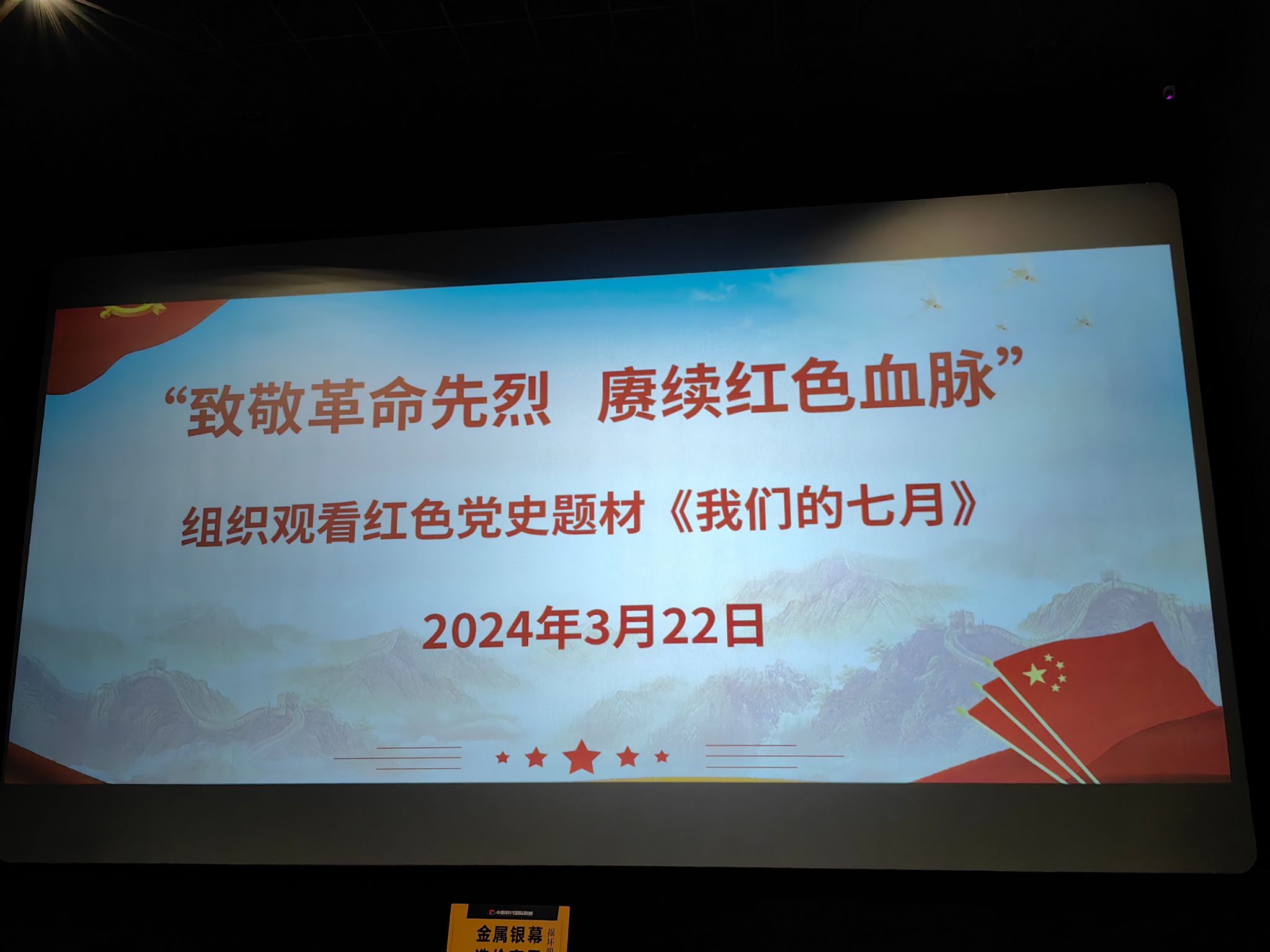 为持续深入开展党史学习教育,进一步加强党员的党性修养,厚植爱国情怀,弘扬爱国主义精神,3月22日下午,文传学院教工第二党支部开展了“红色记忆淬炼党性,光影铸魂传承初心”主题党日活动,集体观看革命题材影片《我们的七月》。