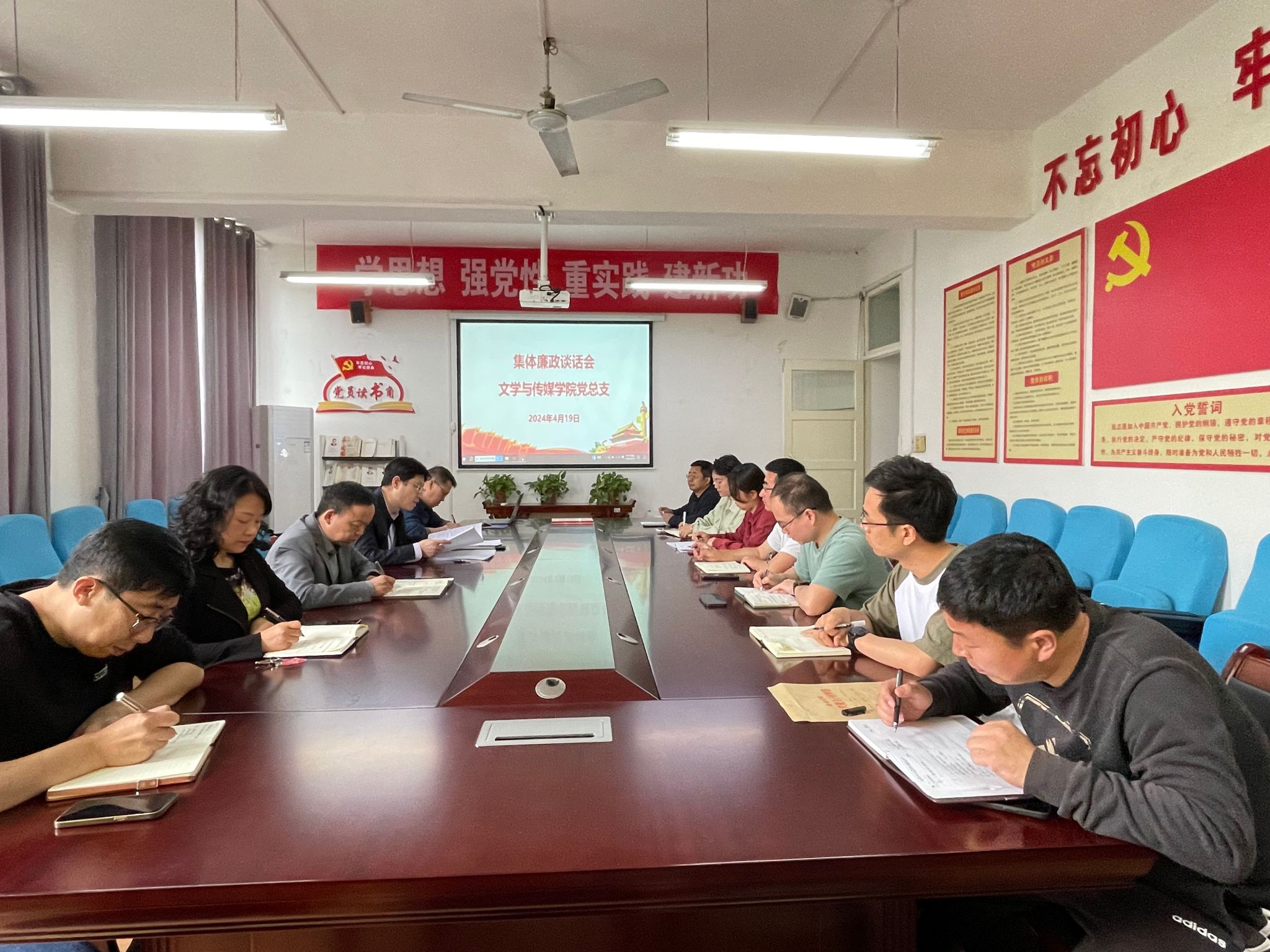 为进一步加强全面从严治党和党风廉政建设,提高领导干部的廉洁自律意识,规范从政行为,文传学院党总支于4月19日上午在2307召开集体廉政谈话会议,学院领导班子全体成员、两办主任、系主任、支部书记和辅导员参加了会议,会议由文传学院党总支书记芦伟主持。