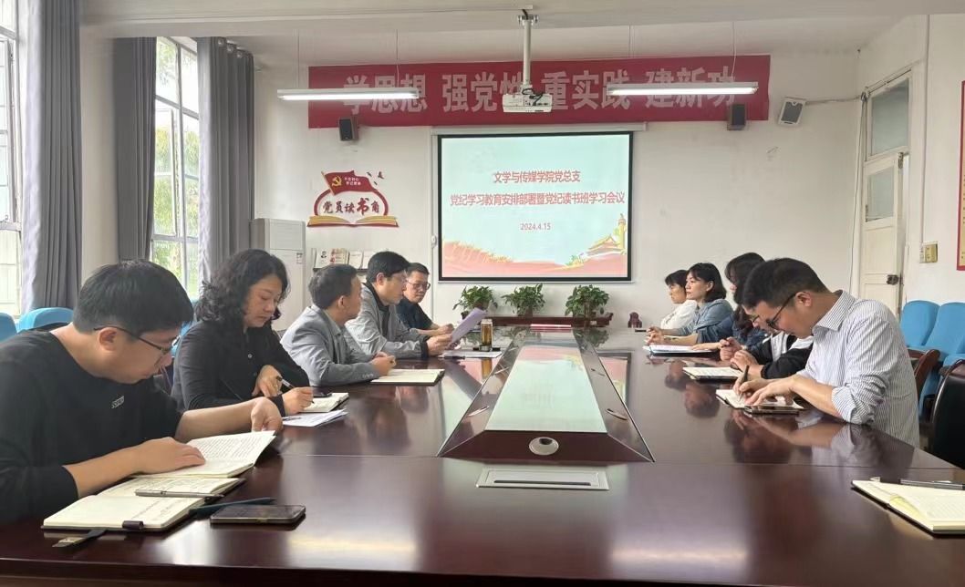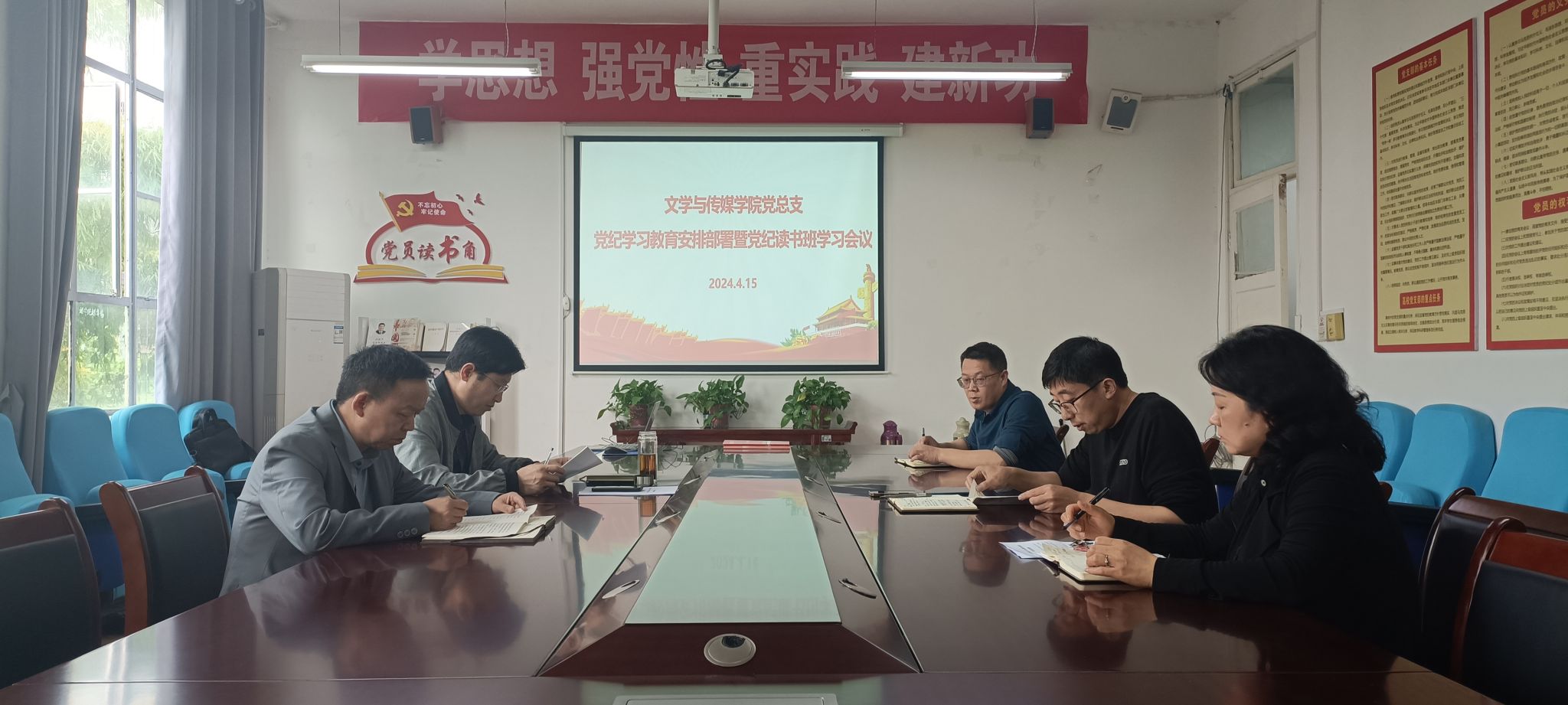 4月15日上午,文传学院党总支在2307召开党纪学习教育安排部署暨党纪读书班学习会议,党总支委员、各支部书记及团总支书记参加会议,会议由党总支书记芦伟主持。
