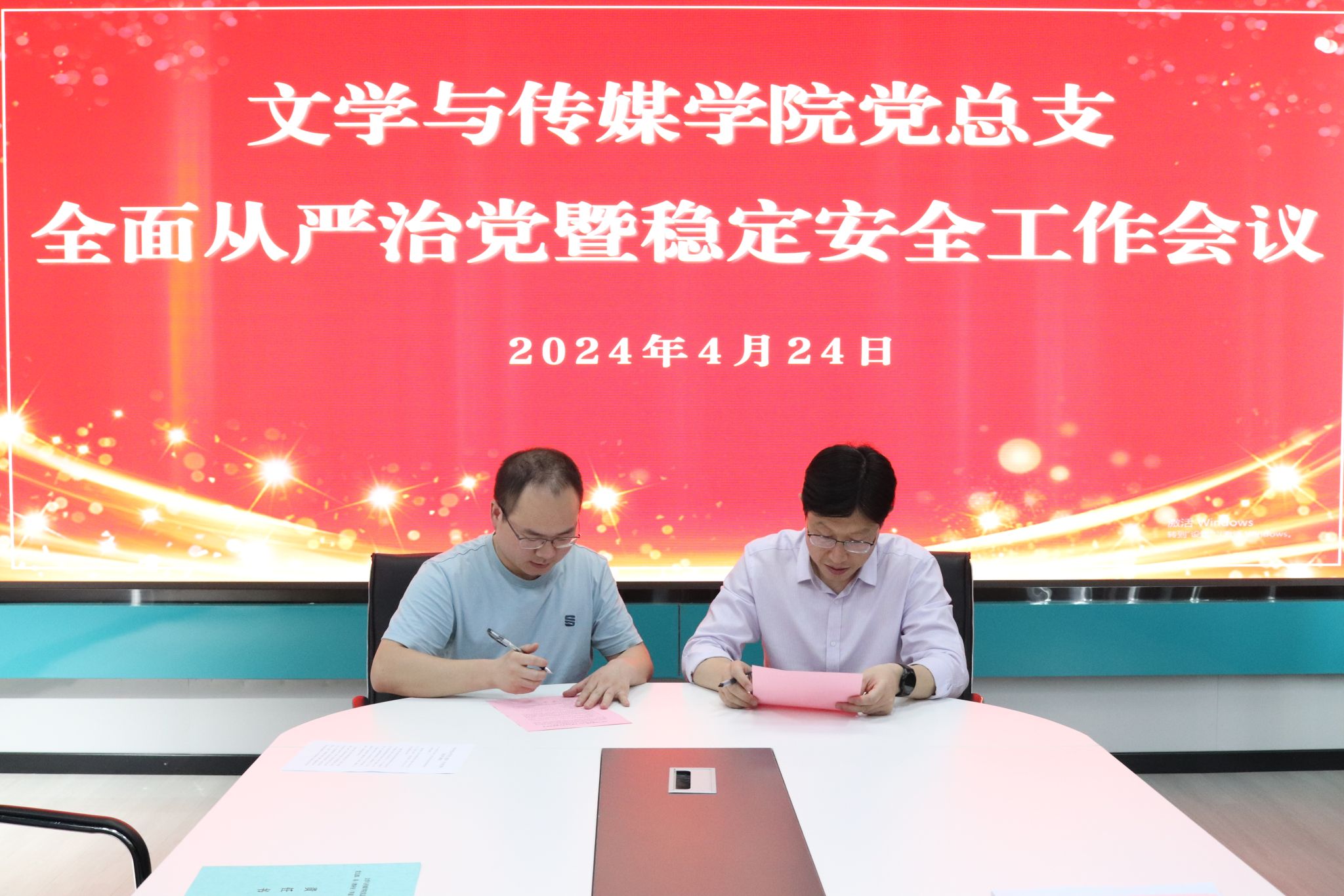 会上,芦伟强调了学校2024全面从严治党稳定安全工作会议要求,根据《中共今年会官网委员会2024年度落实全面从严治党主体责任任务清单》对文传学院相关工作进行了安排部署