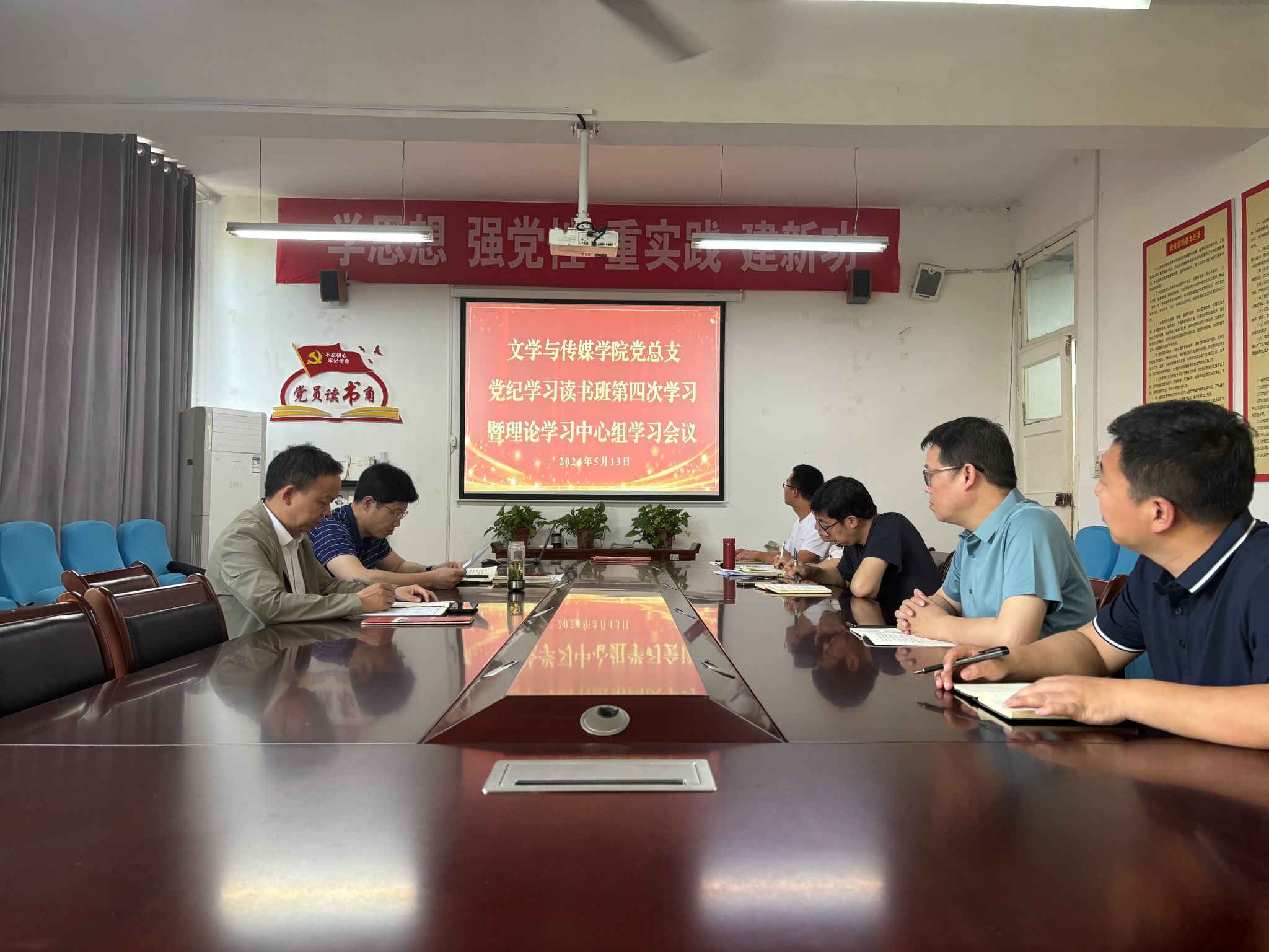 5月13日下午,文传学院党总支在2307会议室召开党纪学习教育读书班第四次学习暨理论学习中心组学习会议,文传学院领导班子成员、理论学习中心组成员参加学习会议,会议由党总支书记芦伟主持。