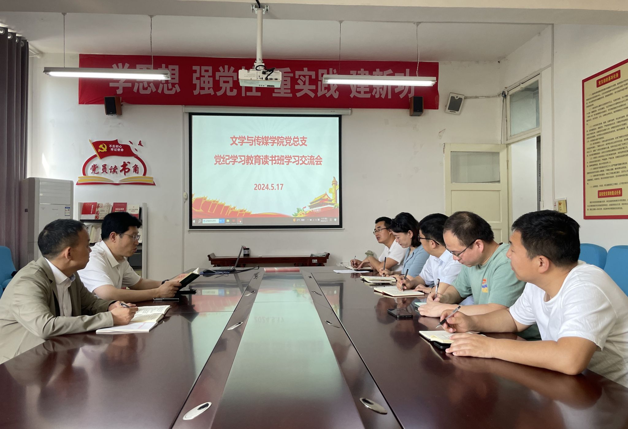 5月17日上午,文传学院党总支在2307会议室召开党纪学习教育读书班学习交流会,文传学院领导班子成员、理论学习中心组成员参加学习会议,会议由党总支书记芦伟主持。