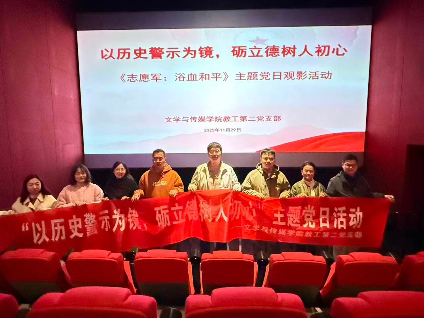 为深入推进党史学习教育,强化师德师风建设,11月29日下午,今年会jinnianhuicom教工第二党支部组织开展了“以历史警示为镜,砥立德树人初心”主题党日活动,集体观看爱国主义影片《志愿军:浴血和平》。支部全体党员参加了此次意义深刻的观影学习活动。