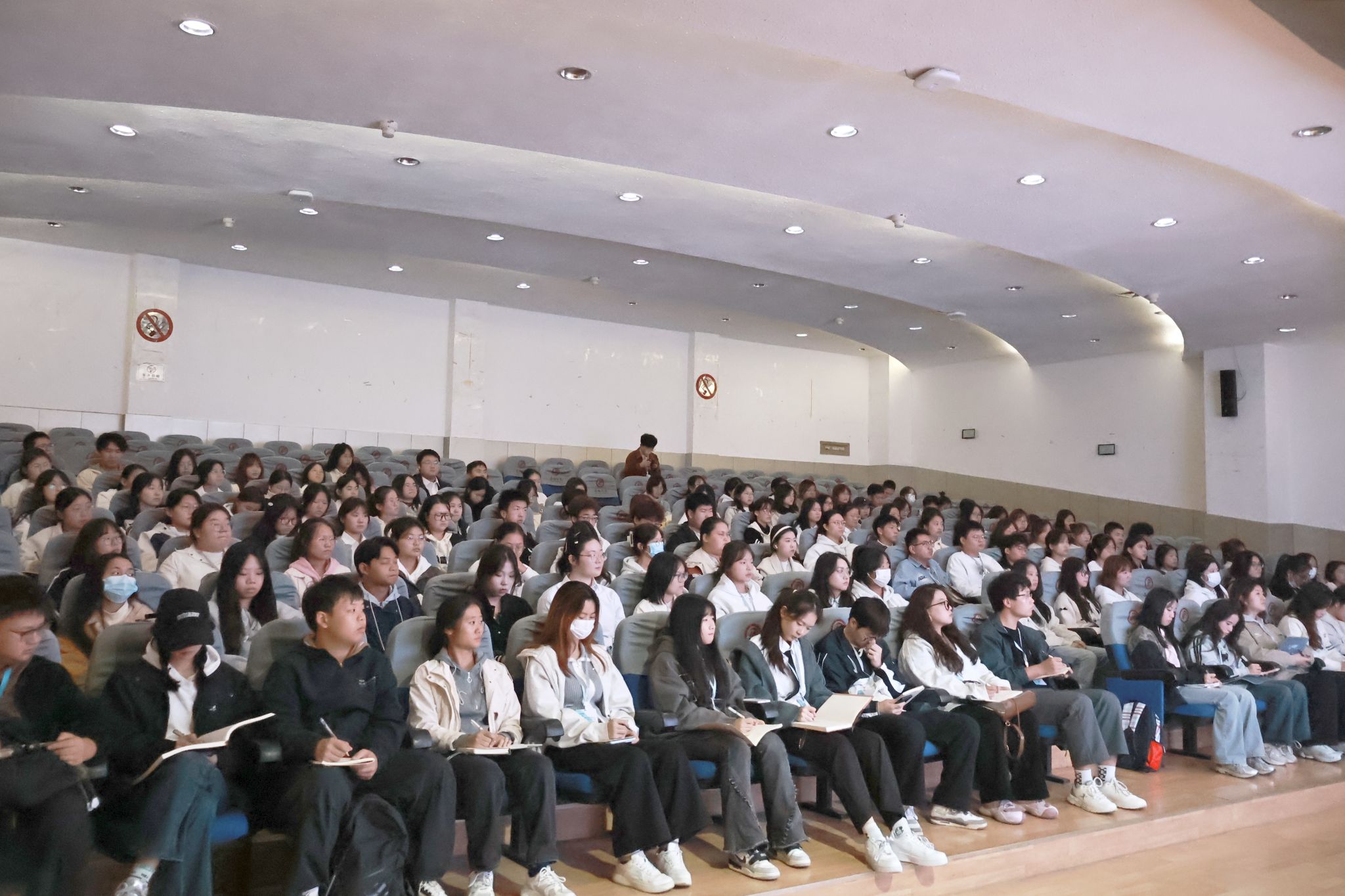 为贯彻落实习近平总书记在全国教育大会上的讲话精神,培养青年学子责任担当意识,加强文传学院学生干部队伍建设,11 月 1日下午,文传学院在一号楼报告厅组织开展党总支副书记讲党课暨学生干部培训第二讲,文传学院团总支学生干部、学生会学生干部及各班级班团干部参加培训。本期培训主题为“朋辈示范,挺膺担当”,由院党总支副书记杨海蓉主讲。