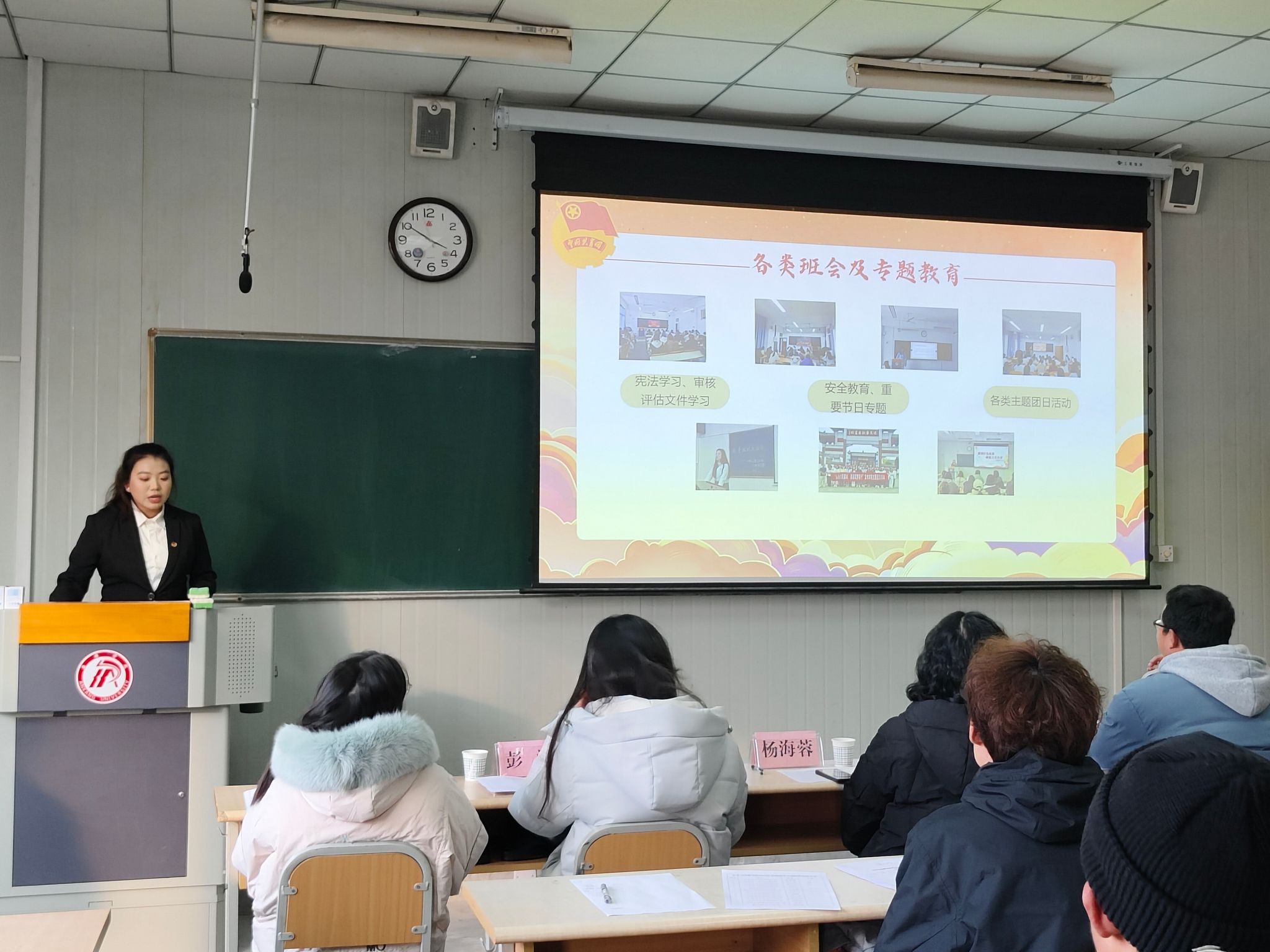 杨海蓉做活动总结,她对两个年级13个团支部的述职表表现给予肯定,希望各团支部要以此次述职评议为契机,总结经验、查缺补漏,不断提高团支部工作的水平。能够创新工作思路,丰富活动形式,进一步加强团支部的自身建设,更好地发扬团支部在团员青年成长成才中的引领作用。