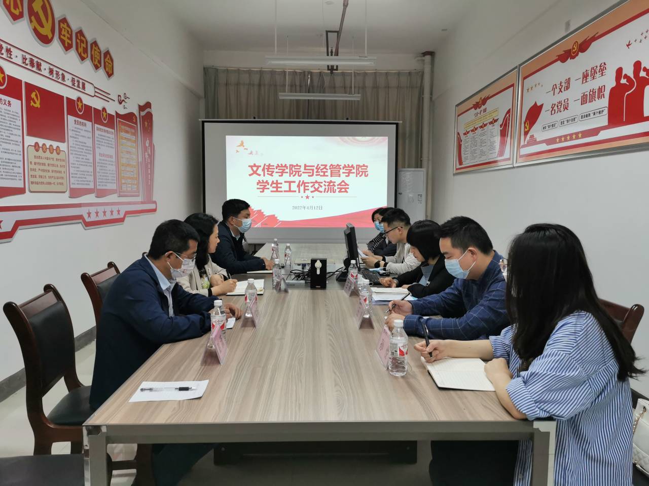 杨海蓉对经管学院学工团队的热情接待表示了衷心感谢,介绍了文传学院学工队伍及辅导员工作室基本情况。两个学院学工团队围绕学生思政教育、学生党支部建设、学风建设、学生日常教育管理、第二课堂建设、共青团工作、就业等工作进行了广泛深入的交流,分享了各自工作的特色和有效经验。