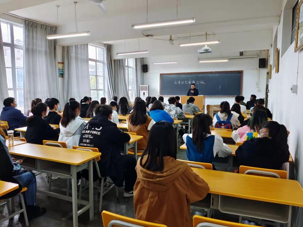 3月31日下午,辅导员邹棠华在2303教室组织召开文传学院2021级新生疫情防控专题会议,2021级各班班长、各班疫情防控工作专干、各宿舍舍长、秘书2019级部分学生干部参加会议。
