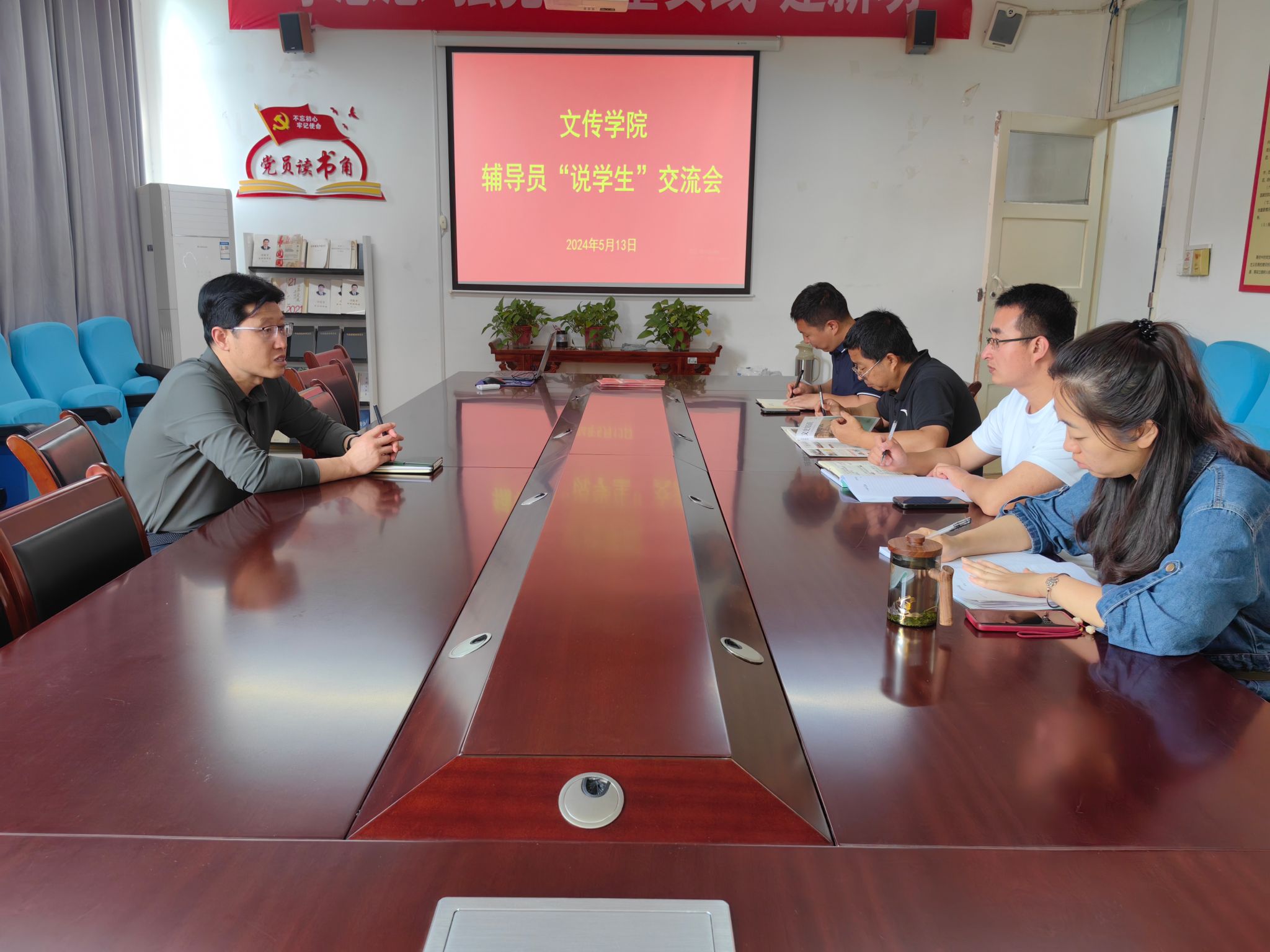 为进一步提升辅导员综合素质和业务水平,落实辅导员岗位职责,不断推动今年会官网思想政治教育和学生管理工作稳步健康发展,文传学院于2024年5月13日在2307会议室组织开展“辅导员说学生”活动,党总支书记芦伟、全体辅导员参加了本次交流活动。
