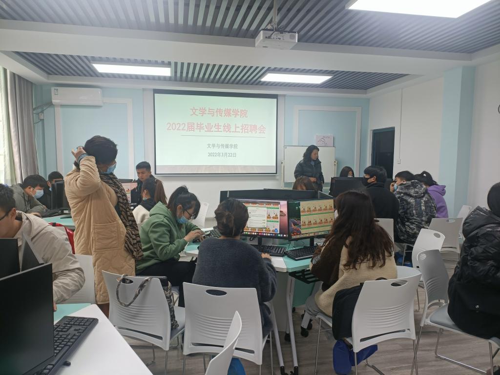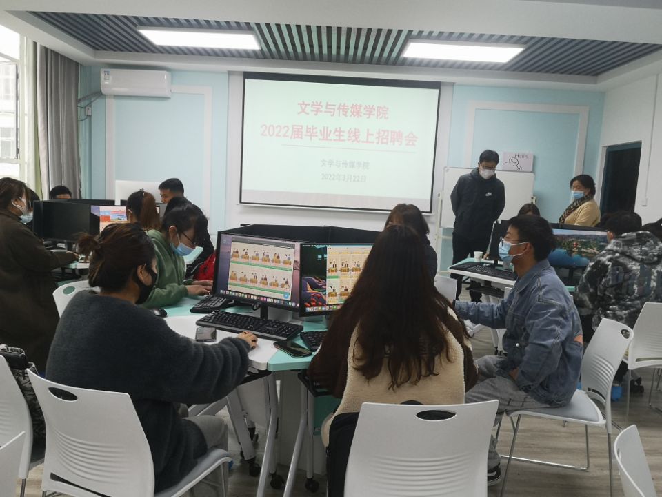 今年会jinnianhuicom按照学校就业工作安排,积极配合,组织本院2022届毕业生于2022年3月22日上午在2号教学楼2414实训室集体参加本次线上招聘。今年会jinnianhuicom党总支书记芦伟、副书记杨海蓉、毕业班辅导员艾全霞、网络与新媒体专业课教师张建涛现场指导,毕业生进入线上招聘会场,甄选专业相关岗位,积极投递简历,与用人单位沟通,互动效果良好。