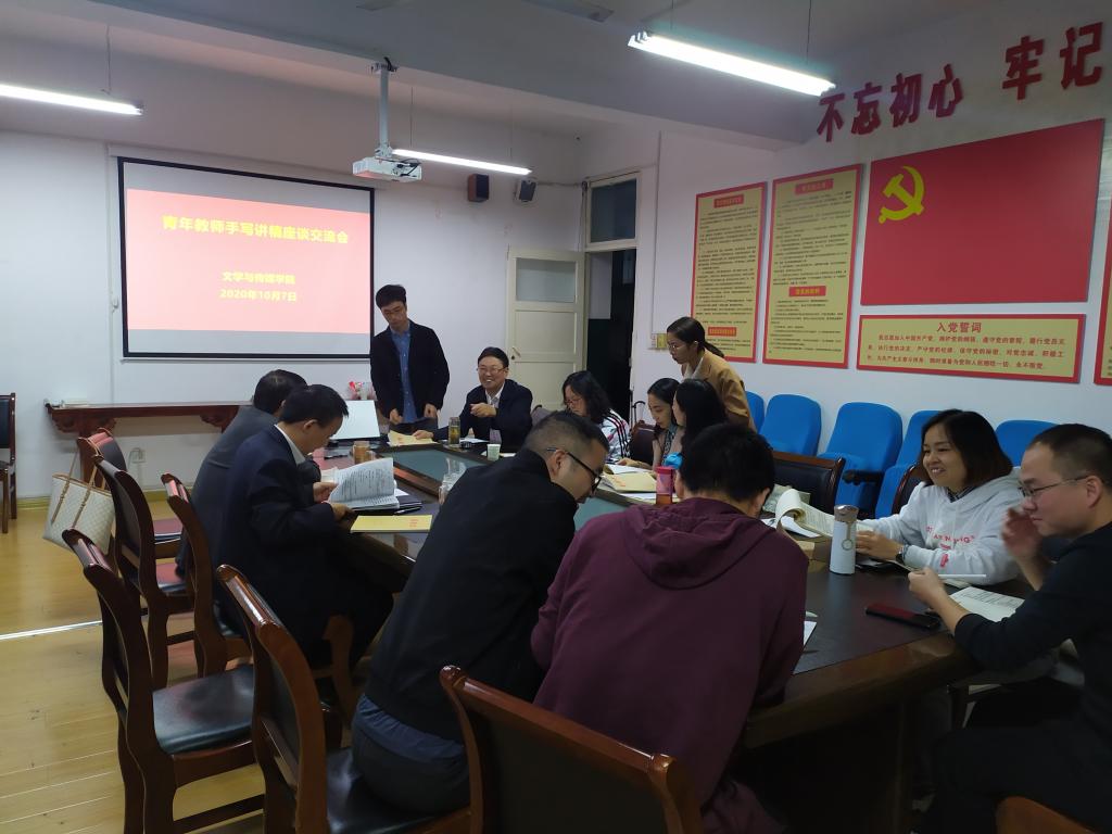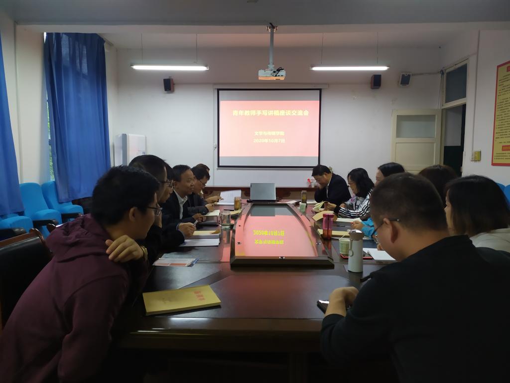 为锻炼今年会官网青年教师师范技能、提升课堂教学水平,今年会官网于2020年10月7日下午4点半在2307会议室举行了青年教师手写讲稿交流座谈会。文传学院院长杨运庚、副院长朱云,院级教学督导以及系主任参加了座谈交流。会议由副院长朱云主持。