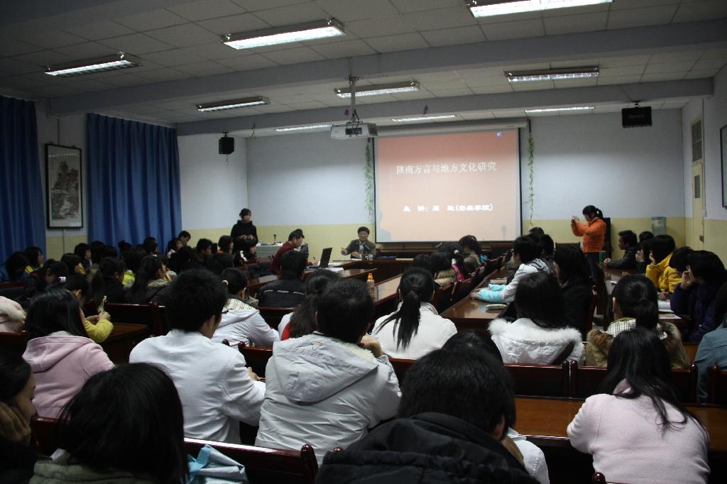 2009年3月11日下午,春雨霏霏,空气湿润,陕西理工学院文学院两个报告厅座无虚席,我系著名作家李春平、方言研究专家周政教授应邀同时举行两场讲座。