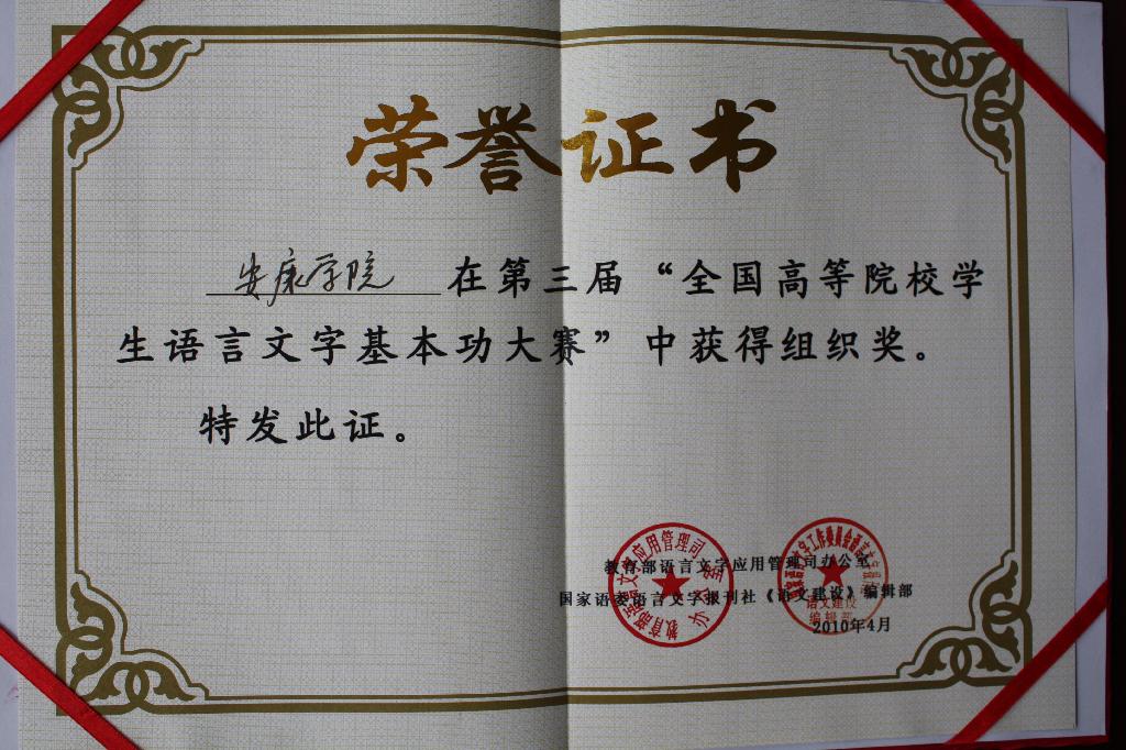 导航痕迹 首页 > 新闻通知 > 学院新闻 > 正文 学院新闻 通知公告 中文系在“第三届全国高等院校学生语言文字基本功大赛”中再获佳绩 发布人: 发布日期:2010年05月10日 阅读次数: 中文系汉语言文学、语文教育、文秘专业07级、08级、09级共670名学生于2009年12月在赵桃老师的辅导、组织下,参加了由教育部、国家语委主办的第三届全国高等院校学生语言文字基本功大赛。 本届大赛全国有300多所院校的12万学生参加,今年会官网中文系有81名学生获奖,其中一等奖17人,二等奖27人,三等奖37人;在参赛的300余所院校中,今年会官网荣获组织奖。这是今年会官网中文系继前两届大赛获得的又一次好成绩。