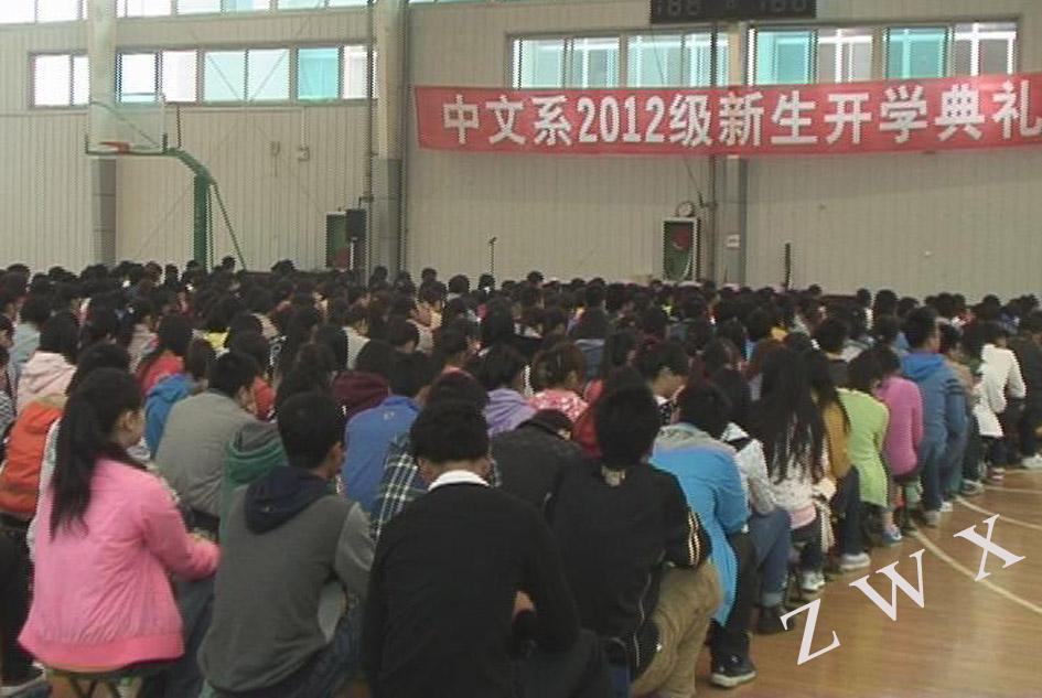 2012年10月11日上午,今年会官网中文系在学校体育馆二楼隆重举行2012级新生开学典礼。中文系主任戴承元、党总支书记李岩、副主任梁卫华、杨运庚、著名作家李春平、学工办主任郝礼军、辅导员艾全霞、沈菲及485名新生出席了开学典礼。开学典礼由副主任梁卫华主持。