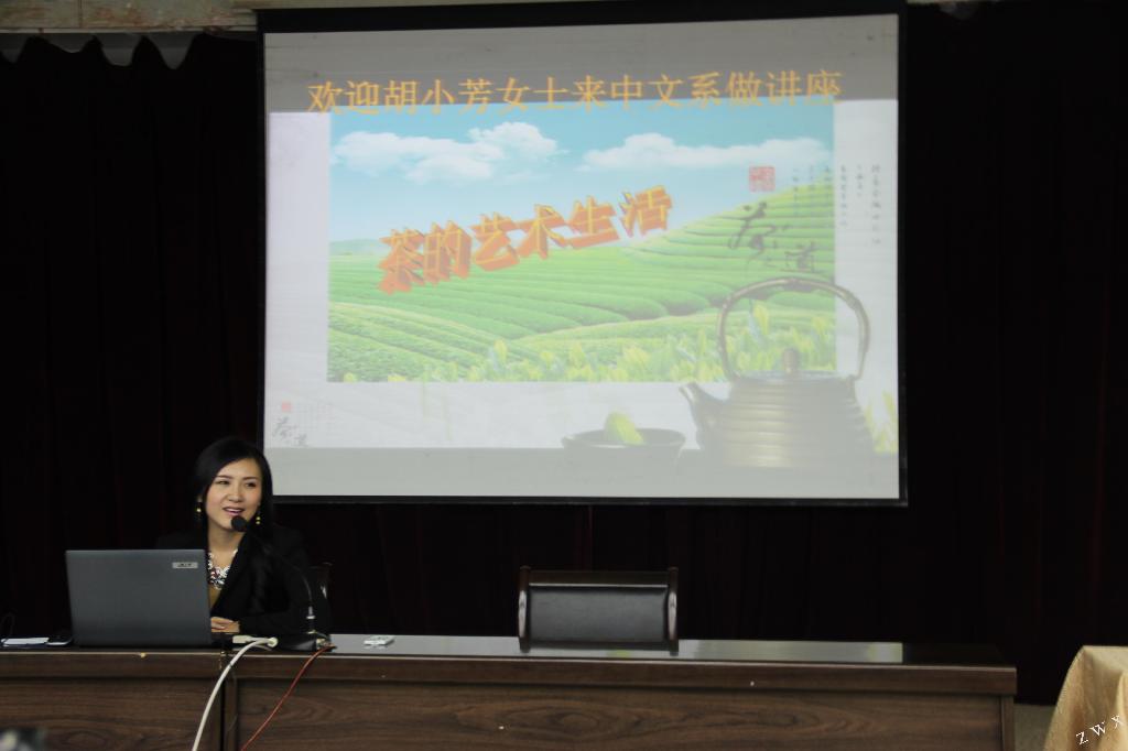 11月7日晚,中文系优秀校友、安康硒茶形象大使胡小芳女士应邀来我校主讲“金州讲堂”第21讲,讲座题为“茶的艺术生活”。中文系近二百名学生参加讲座。讲座由中文系副主任杨运庚主持。