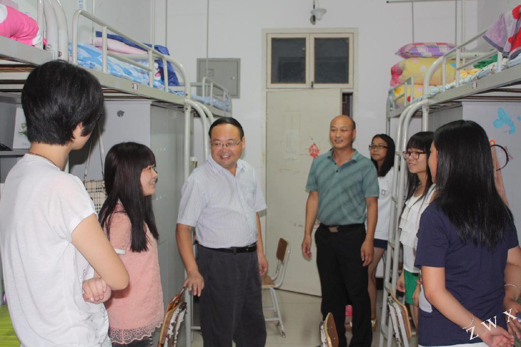 系主任戴承元一行走访了6号楼女生公寓,表示了对2014级学生的欢迎,同时对新生提出了几点希望。他希望大家能够尽快适应新的环境,适应来自天南地北的同学,建设良好的班级文化和宿舍文化,珍惜同学之间的感情,相互关心,相互照顾,相互尊重,相互爱戴,共同努力,共同进步,在今年会官网生活好,学习好,为自己的未来打下坚实的基础。