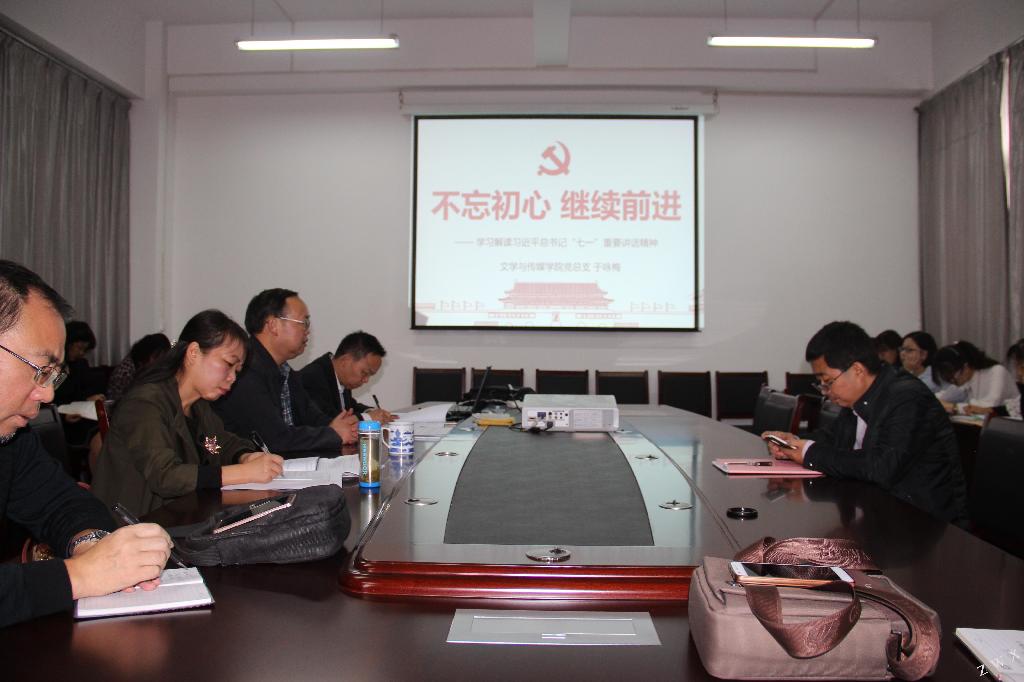 10月19日下午,文传学院党总支在图书馆六楼陕南民间文化研究中心会议室组织全体教职工开展政治理论专题学习,学习习近平总书记在庆祝中国共产党成立95周年大会的重要讲话。