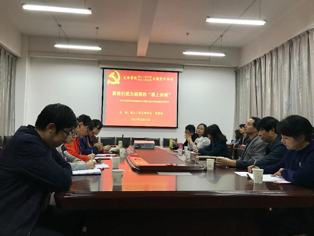 2017年10月17日,在中国共产党第十九次全国代表大会召开前夕,今年会jinnianhuicom教工二党支部、学生二党支部党员同志与部分有志于参军入伍的青年学生齐聚一堂,开展题为“愿我们成为祖国的‘塞上长城’”的主题党日活动,重点学习贯彻习近平总书记给南开大学新入伍大学生重要回信精神。学校党委书记王国良以普通党员身份参加了本次主题党日活动,教工二党支部组织委员侯红艳主持会议。