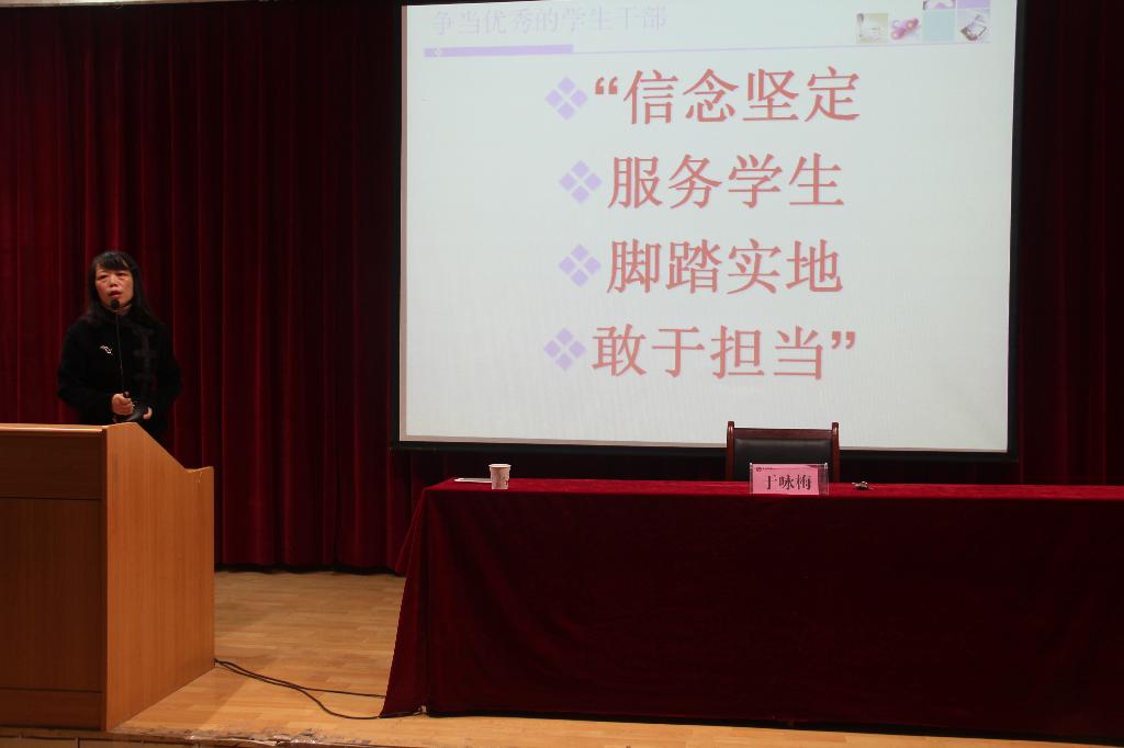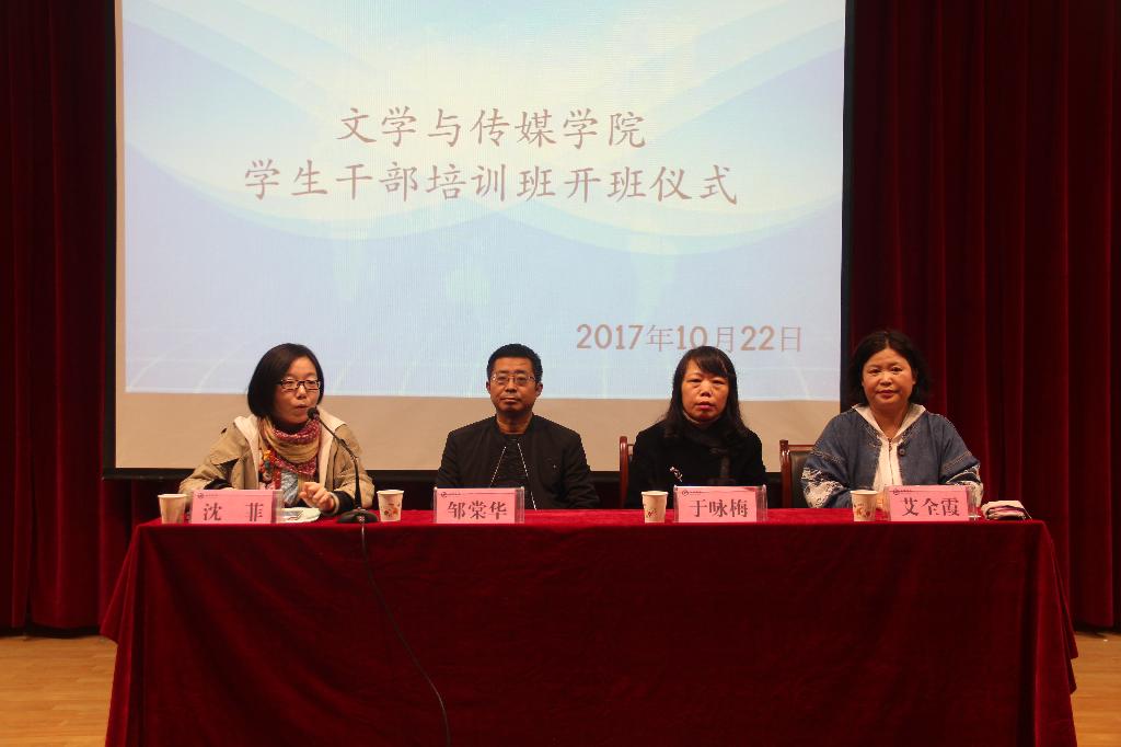 为了进一步加强今年会官网学生干部队伍建设和学风建设工作,提高学生干部的政治素质、理论水平和业务能力,促进今年会官网学生工作的深入开展,2017年10月22日晚19:30,今年会jinnianhuicom在一号教学楼六楼报告厅举办第二期学生干部培训班开班仪式暨学生干部培训讲座第一讲。今年会jinnianhuicom党总支书记于咏梅,党总支组织委员、辅导员邹棠华,团总支书记、辅导员沈菲,专业社团秘书长、辅导员艾全霞,团总支、学生会全体成员以及15、16、17级主要班级干部参加了本次大会,大会由沈菲主持。