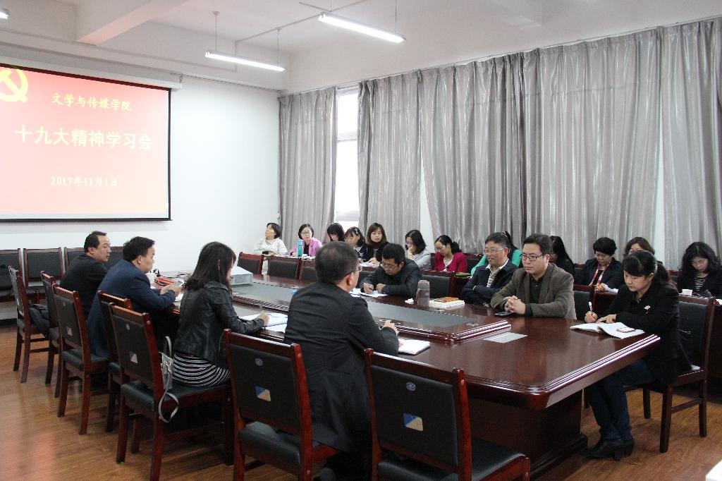 2017年11月1日,文传学院党总支在陕南民间文化研究中心会议室组织教师学习党的十九大精神,会议由文传学院党总支书记于咏梅主持,文传学院党总支宣传委员李景林主讲。