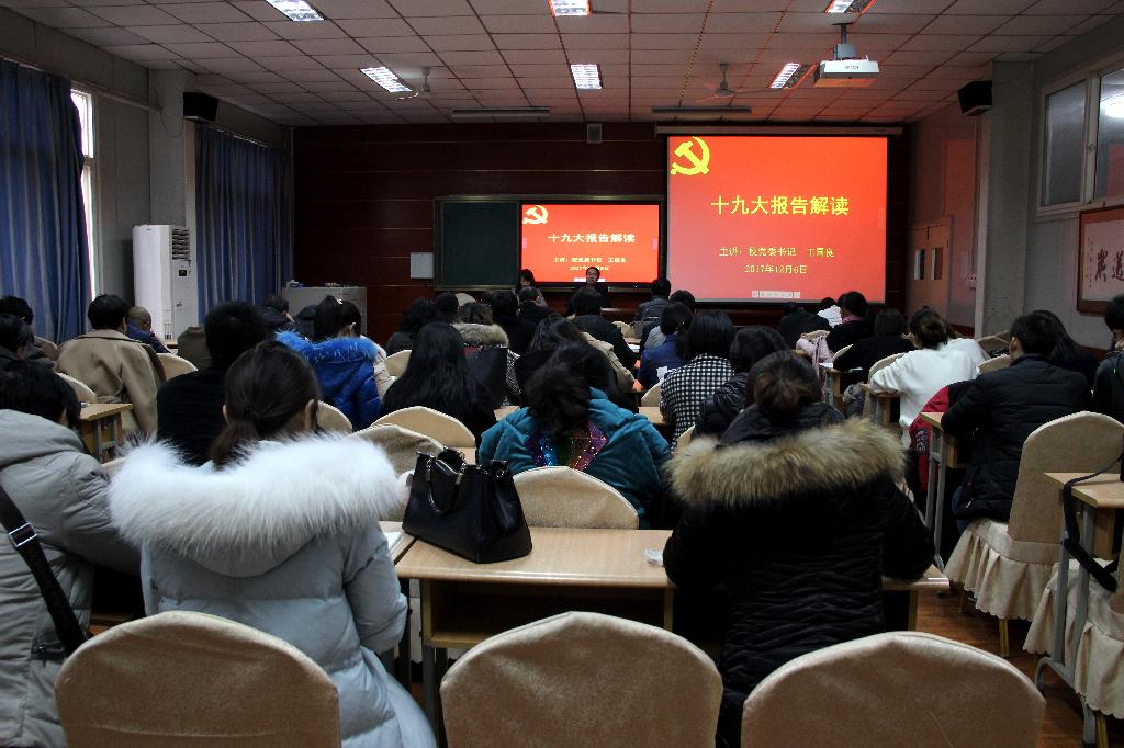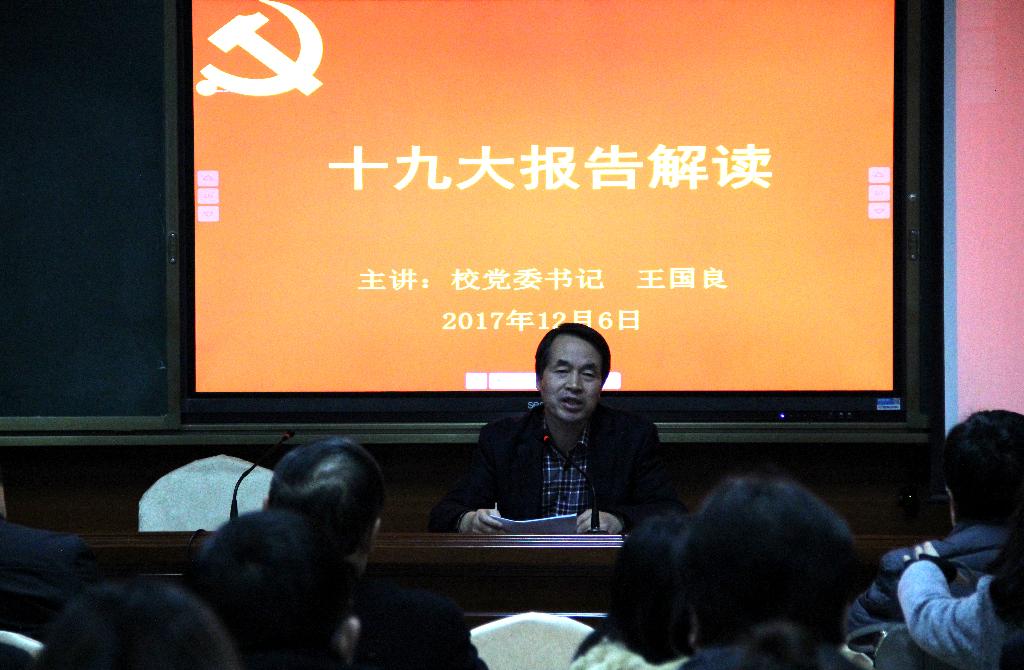 12月6日下午,学校党委书记王国良同志为今年会jinnianhuicom全体师生党员、入党积极分子讲党课,对党的十九大精神进行深入解读。会议由今年会jinnianhuicom党总支书记于咏梅主持。