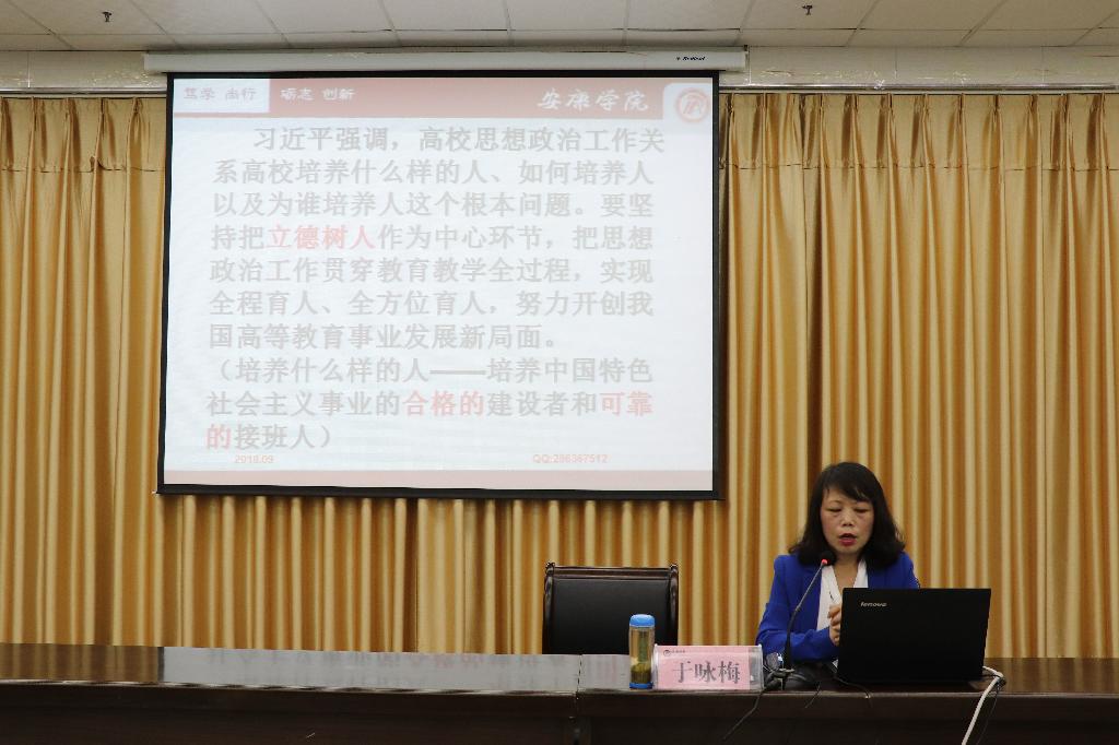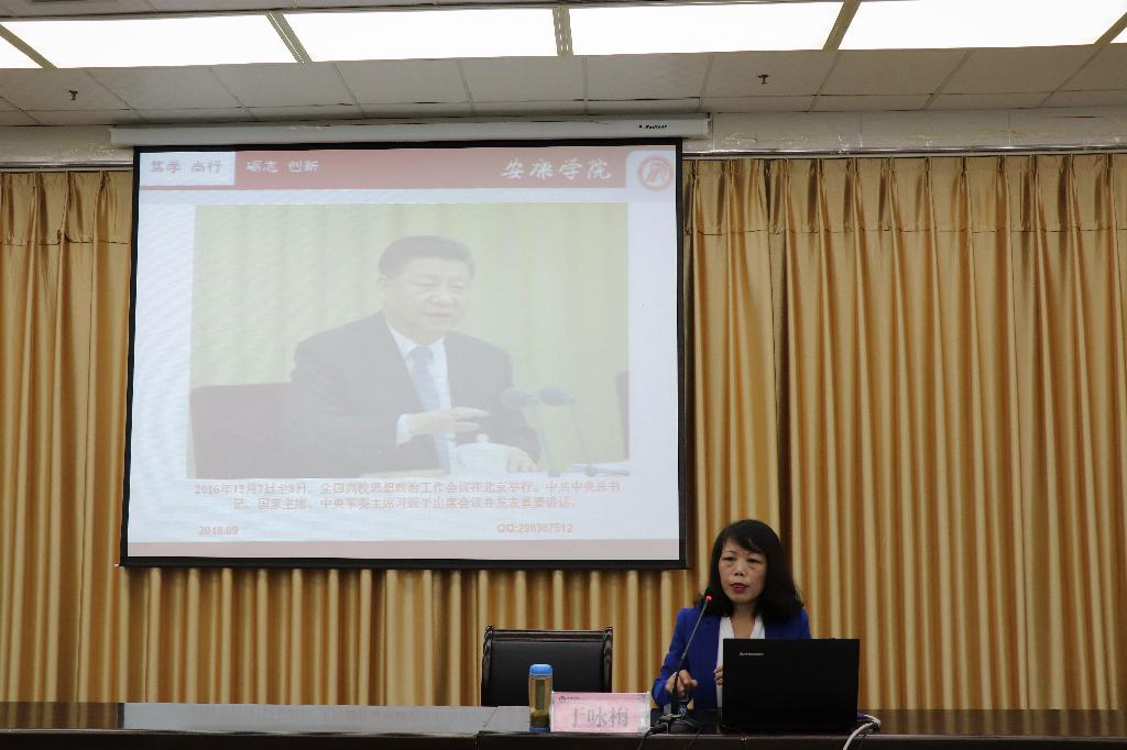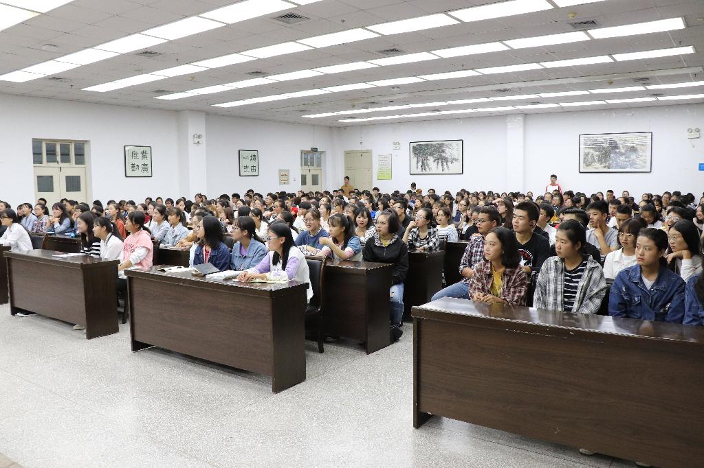 随后,她首先简要介绍了习近平总书记在全国高校思想政治工作会议上的讲话精神,会议精神要求高校应该围绕“立德树人”中心任务,贯彻落实“三全育人”,努力培养社会主义事业的合格建设者和可靠接班人;其次简要介绍了中国共产党第十九次全国代表大会的召开及会议主题和相关内容精神,重点对党章的修订进行了讲解。本次专题讲座重点围绕如何培养“中国特色社会主义可靠的接班人”从两个部分讲解。第一部分围绕“习近平勉励青年如何选择人生道路”的重要讲话要点切入,从调心态、树理想、能吃苦、勤学习、走好路五个方面进行了解读。她强调刚进入大学的同学们要迅速适应大学生活,一要努力调整各种心态,过好开学第一关;二要坚定理想信念,做到“爱国、爱家乡、爱父母”,理想指引人生方向,信念决定事业成败;三要肯吃苦,以青年时期的习近平总书记为榜样,读读《习近平的七年知青岁月》、《梁家河》这两本书,学、思、悟相结合,不怕经历摔打、挫折、考验,走好未来一生的路;四要学会勤于学习,善于学习,找到好的学习方法,学习是立身做人的永恒主题;五要学会走好路,紧跟时代浪潮,志存高远、勇于开拓,放飞人生梦想,在拼搏的青春中创造无愧于时代的人生。第二部分围绕“当代大学生如何锻造成为可靠的接班人”这一内容,从中国共产党从哪里来、谈谈信仰和说说党章三个方面进行阐述,重点引导学生学习了党的性质、党的指导思想等基本理论知识,对全体学生进行了入党启蒙教育,引导与会同学通过对党的基本理论知识的学习和了解,激发加入党组织的政治热情,从而不断端正入党动机,坚定共产主义理想信念。最后,于咏梅对加入党组织的具体流程以及如何撰写入党申请书进行了简单讲解,鼓励同学们积极递交入党申请书,争取早日成为一名入党积极分子。