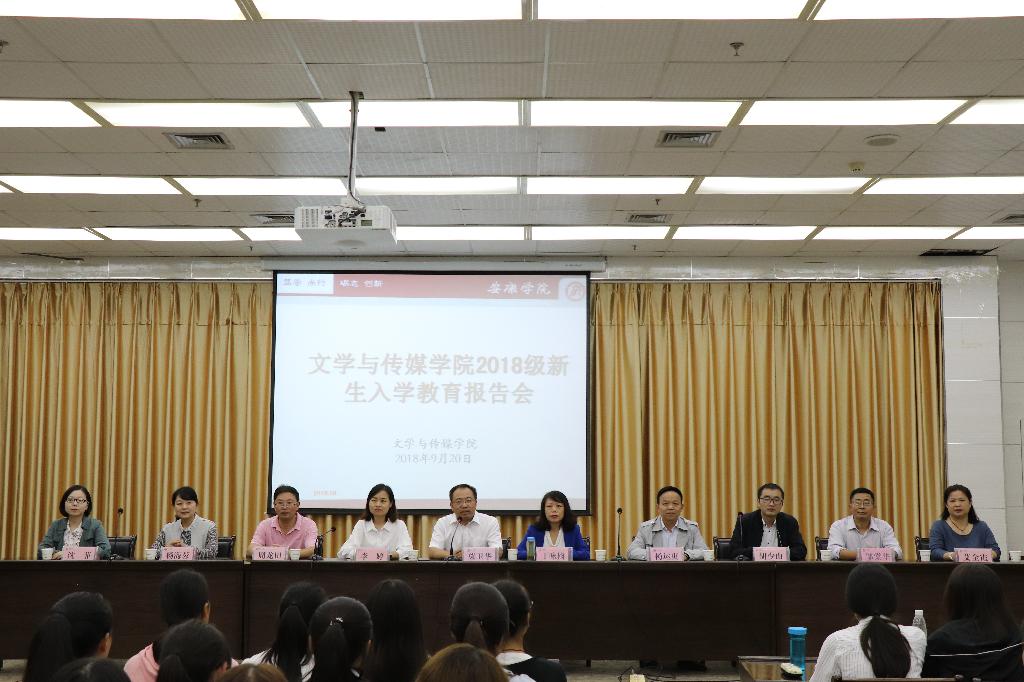 金秋九月,桂花飘香。2018年9月20日晚7点30分,今年会jinnianhuicom在图书馆六楼报告厅举办2018级新生见面会暨入学教育讲座第一讲。文传学院院长、党总支副书记戴承元因公出差未能参加,党总支书记、副院长于咏梅,副院长梁卫华、杨运庚,汉语言文学系系主任李婷,语文公共教研室主任周龙田,秘书与新媒体系主任胡少山,党政办公室主任杨海蓉,学工办主任沈菲,辅导员邹棠华、艾全霞和2018级全体新生参加。见面会及讲座由梁卫华主持。