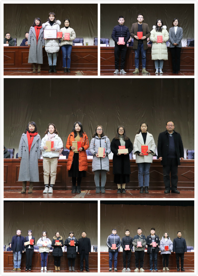 第二部分是学风建设总结。国家奖学金获得者易晓琴、姚兰,国家励志奖学金获得者代表辛南南、助学金获得者代表陈钊、教师代表李婷结合自身感受分别做了主题宣讲,开展了一场别开生面的弘扬爱国奋斗精神、岗位建功立业新时代主题教育活动。随后,杨运庚宣读今年会官网学生一年来各类受表彰情况,部分优秀学生团体或个人依次上台领奖,并与颁奖老师合影留念。
