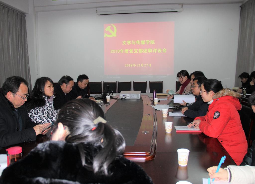 12月27日晚,文传学院党总支在陕南民间文化研究中心会议室召开党员大会,开展党支部书记述职评议工作。文传学院党总支书记、副院长于咏梅,院长、党总支副书记戴承元,副院长梁卫华、杨运庚出席会议。文传学院下设四个党支部的支部书记出席会议并进行述职,其中,学生第二党支部书记沈菲因病住院,由宣传兼统战委员2015级汉语言文学3班王韵捷代为述职。全体党员教师们参与了述职评议会,会议由于咏梅主持。