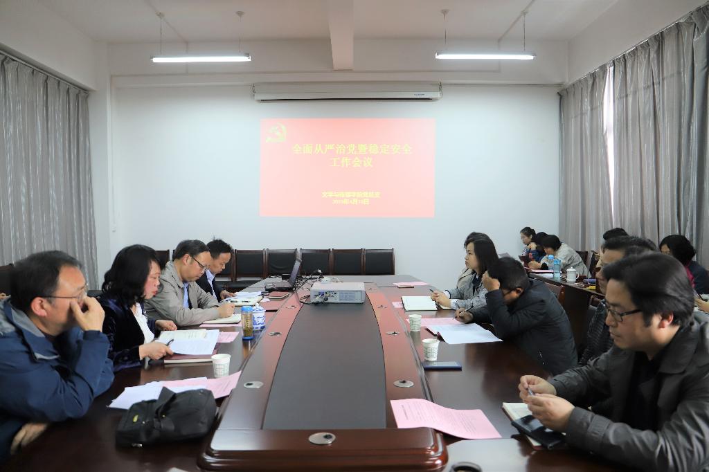 4月10日下午,文传学院在陕南民间文化研究中心会议室召开了全面从严治党暨稳定安全工作会议。院长戴承元、党总支书记于咏梅、副院长梁卫华、杨运庚以及全体教师出席会议。会议由戴承元主持。