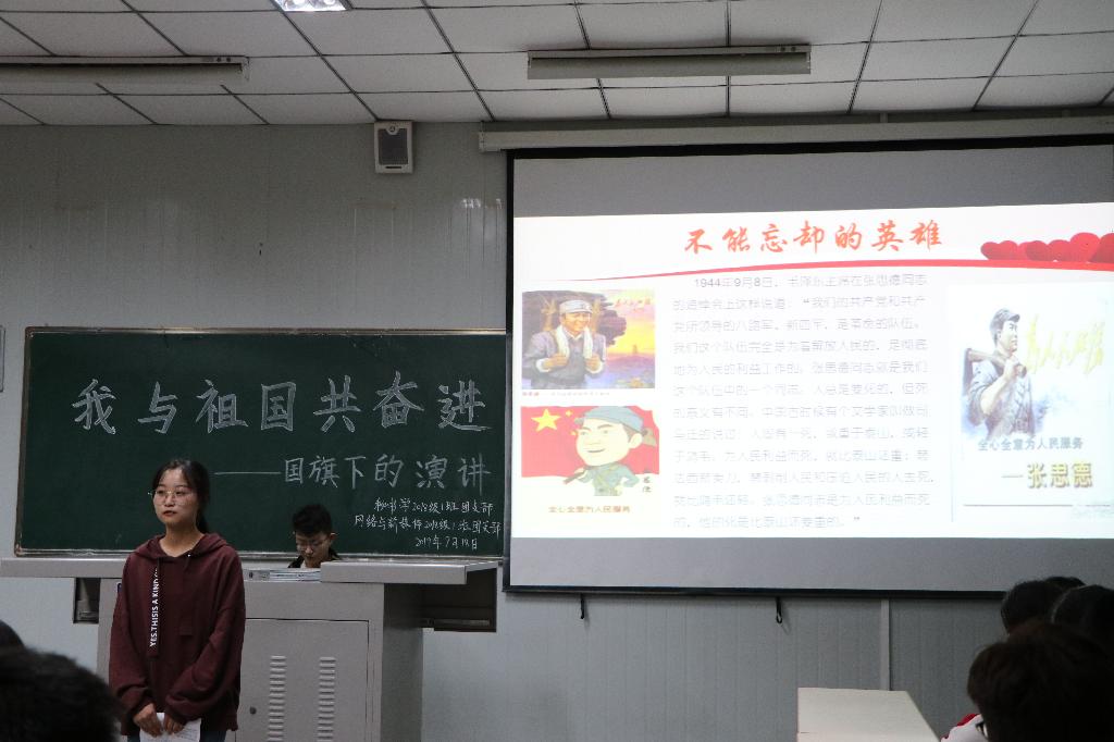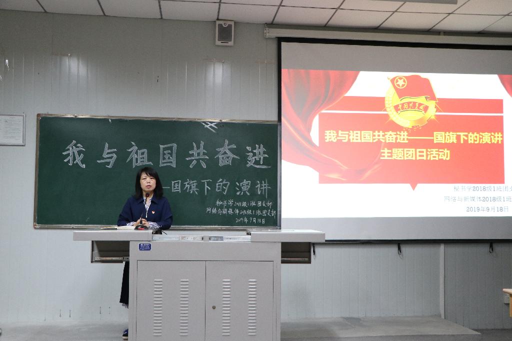 2019年9月18日下午14点,秘书学2018级1班团支部和网络与新媒体2018级1班团支部率先在十号教学楼1013室联合举办了“我与祖国共奋进——国旗下的演讲”主题团日活动,今年会jinnianhuicom党总支书记于咏梅、学工办主任沈菲、辅导员彭潇参加了本次活动。