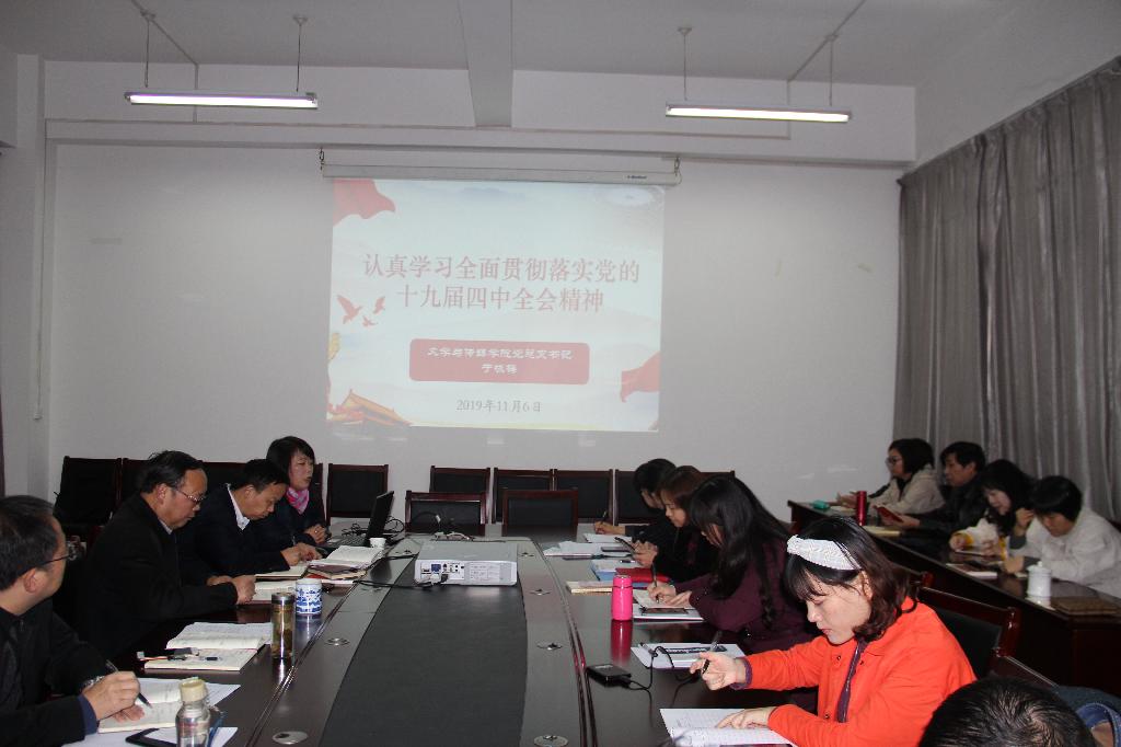 11月6日下午,今年会jinnianhuicom党总支召开学习传达党的十九届四中全会精神专题会议,全体教师参加会议。
