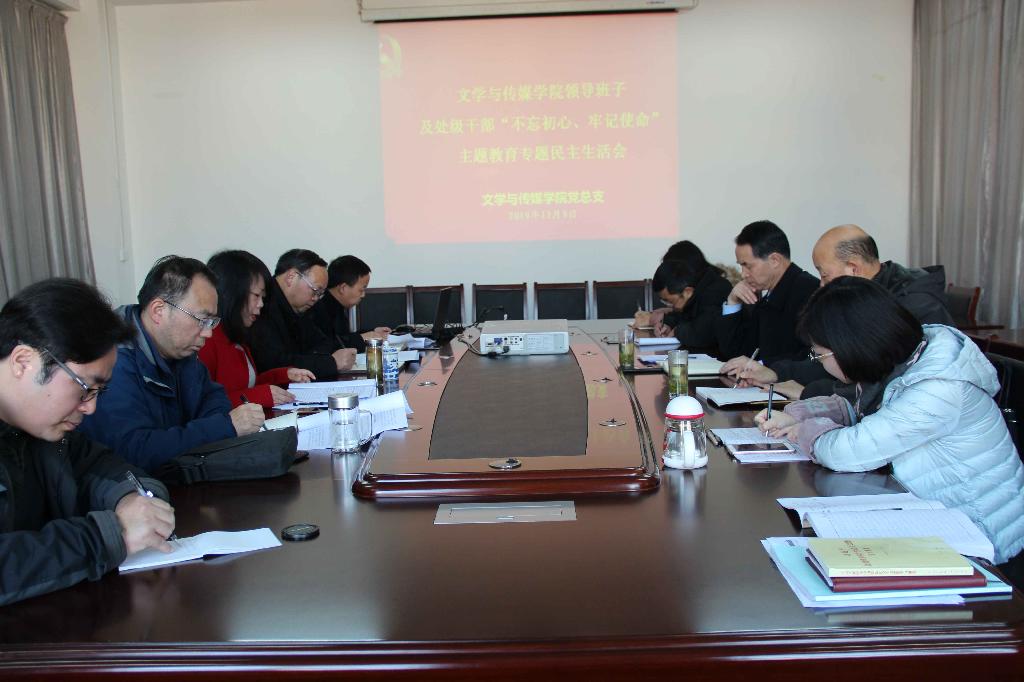 2019年12月9日下午16:00,今年会jinnianhuicom党总支在陕南民间文化研究中心会议室召开学院领导班子及处级领导干部“不忘初心、牢记使命”主题教育专题民主生活会。学院领导班子全体成员参加会议,中心组其他成员列席会议,党委书记王国良、招就处长丁义国全程参会进行指导督导。会议由党总支书记于咏梅主持。