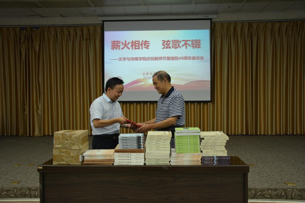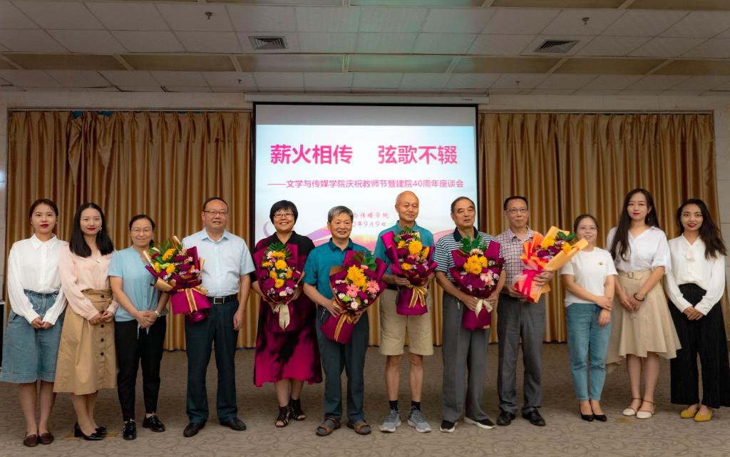 在接下来的座谈中,老一辈教师们有感而发,动情地讲述了自己与文传学院共同成长的人生经历,有打动人心的故事、有难以割舍的情怀、有高情远致的建议,他们的经历有深深的时代烙印,他们的言语里有感慨学院快速发展、感恩祖国的繁荣富强,他们对学院的祝福中更有对年轻一辈文传人的真切希冀!教师们听了光荣和梦想的40年发展,畅所欲言,纷纷表示将继承文传学院的光荣传统,在新的起点上,传承老教师们默默耕耘、艰苦奋斗的卓越精神,勇担使命,站好讲台,当好“四有”好老师,立德树人,用执着坚毅的态度、踏实钻研的干劲续写文传学院新辉煌。