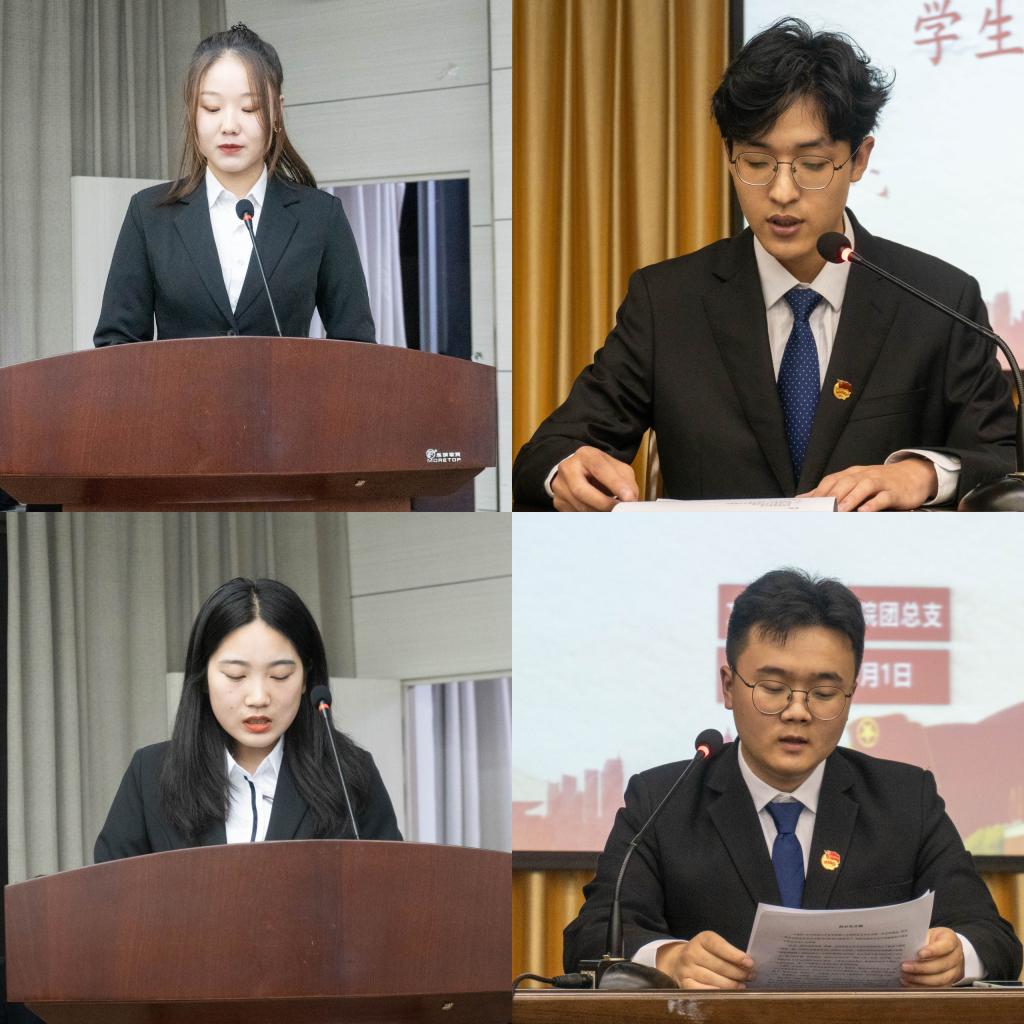 彭潇宣布了今年会官网第15届团总支、学生分会的机构名单,新任主席团代表邓博予和团总支副书记薛镯分别向大会报告了新学年开展学生分会、团总支工作的思路和设想。邓博予领学了学生分会誓词。