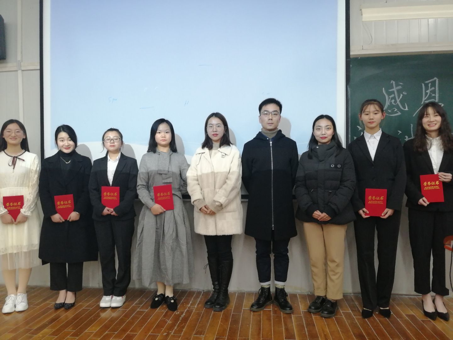 大赛最后环节,首先由韩文霞老师对同学们的此次演讲进行点评,她指出演讲过程中的优点与不足,并向同学们讲述了演讲的技巧,鼓励同学们总结经验,更进一步。随后盘老师,王老师也对同学们的表现进行了客观公正的评价,鼓励同学们继续努力。最后由指导老师黄老师进行总结。评委老师为获奖的同学们颁发荣誉证书,并进行合影留念,主持人宣布比赛结束。
