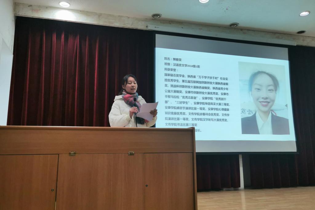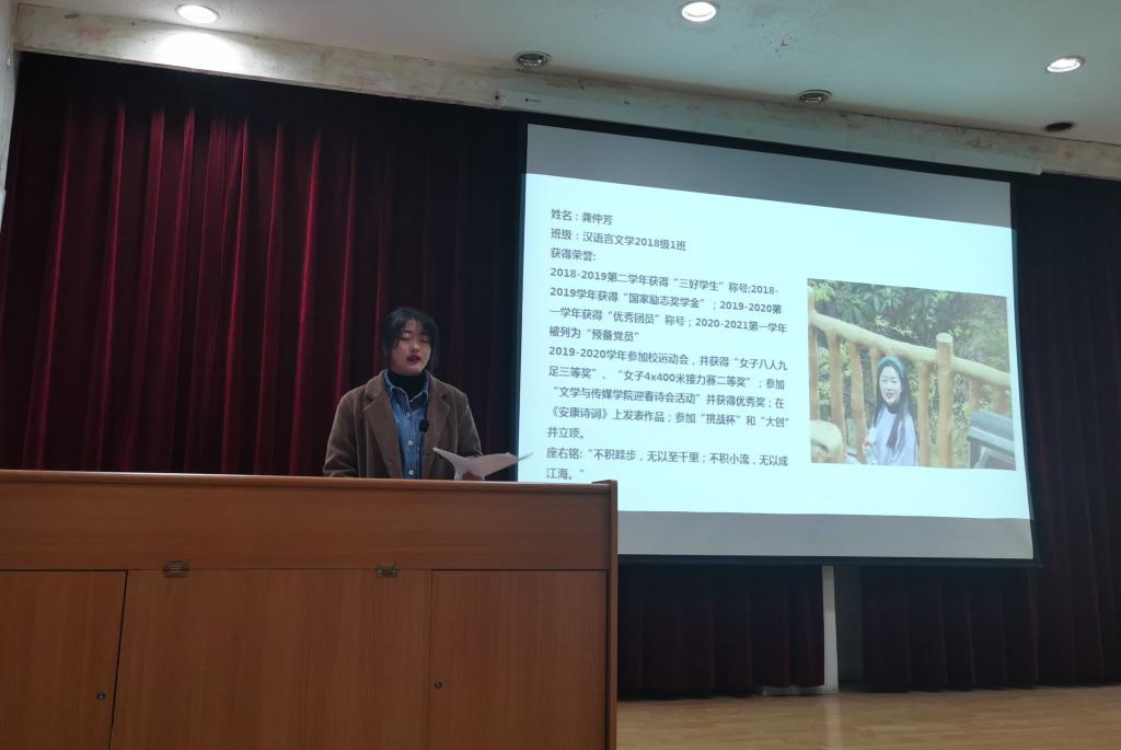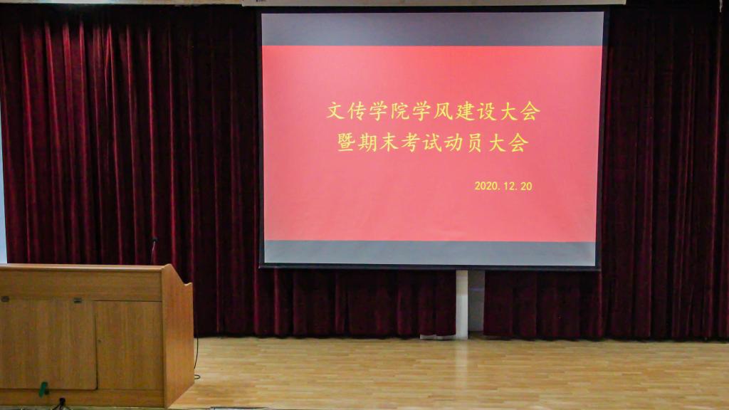 为进一步宣传国家资助政策及育人成效,引导激励广大受资助学生奋发图强,文传学院于12月20日晚19:30在一号楼六楼报告厅召开学风建设暨期末考试动员大会,文传学院学工办副主任薛涛,国家奖学金获奖学生王孝臻,国家励志奖学金获奖学生郭雅雯、龚仲芳和2020级全体同学参会。会议由学工办副主任薛涛主持。